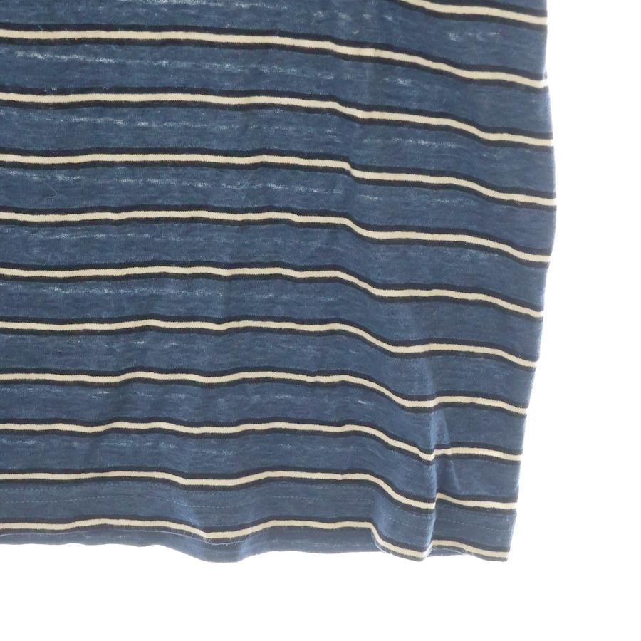 [モデル]フロント ロゴプリント ボーダー クルーネック 半袖Tシャツ カットソー ブルー 493J671B0938