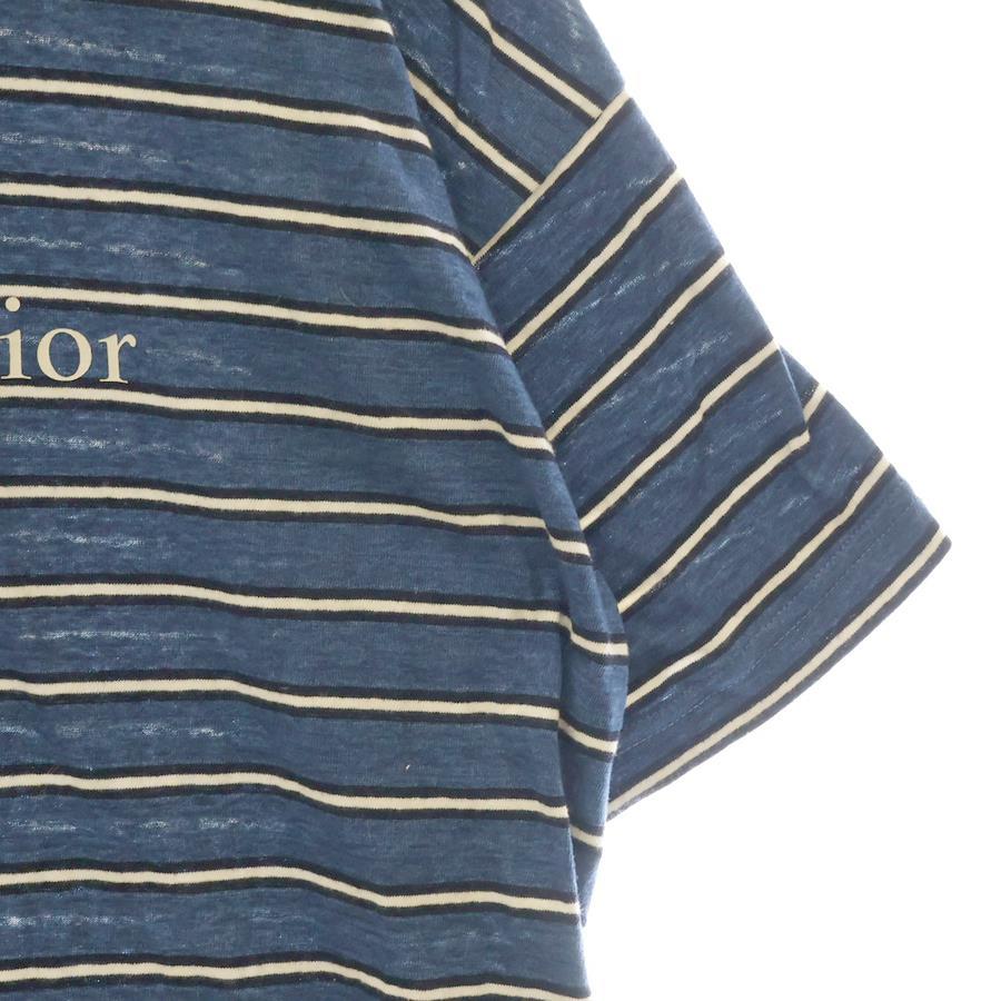Dior Front Logo Print Border Crew Neck Short Sleeve T-Shirt Cut and Sew Blue 493J671B0938 S Blue