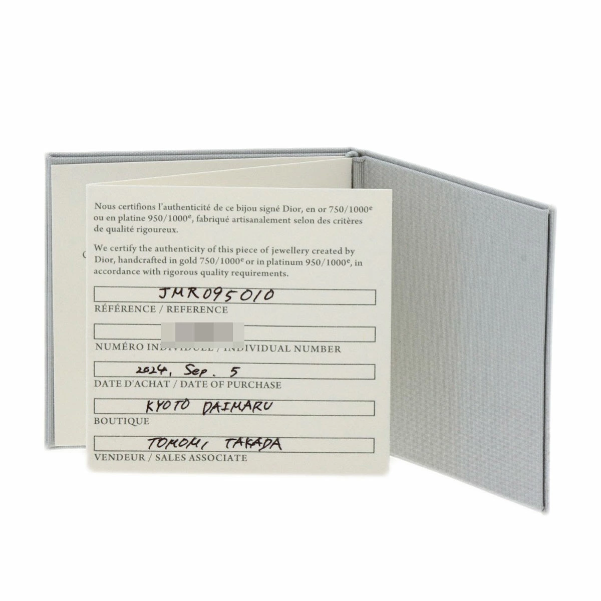 | 付属品 | ディオール保証書・箱 |