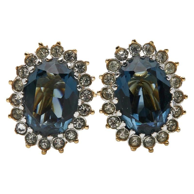 Pre-owned Dior Rhinestone Earrings, Gold and Blue Plated, Women's.