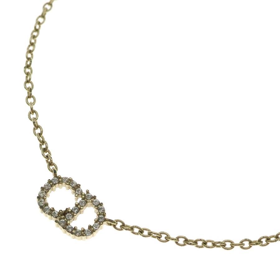 Dior CD Logo Rhinestone Chain Necklace Gold-Gold