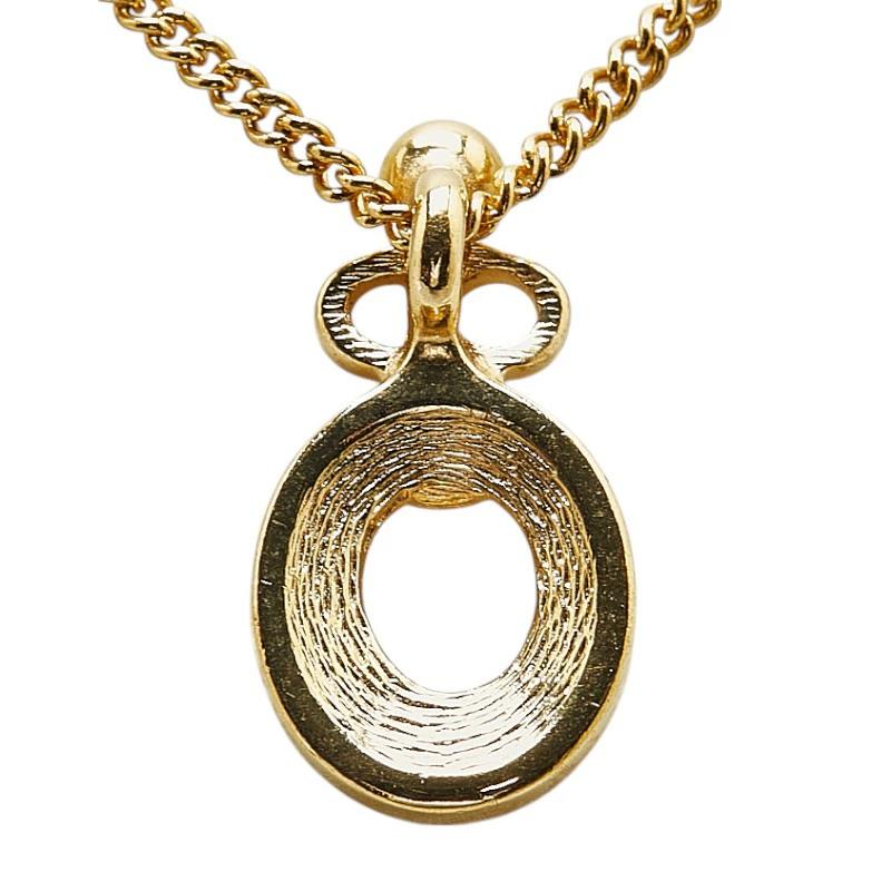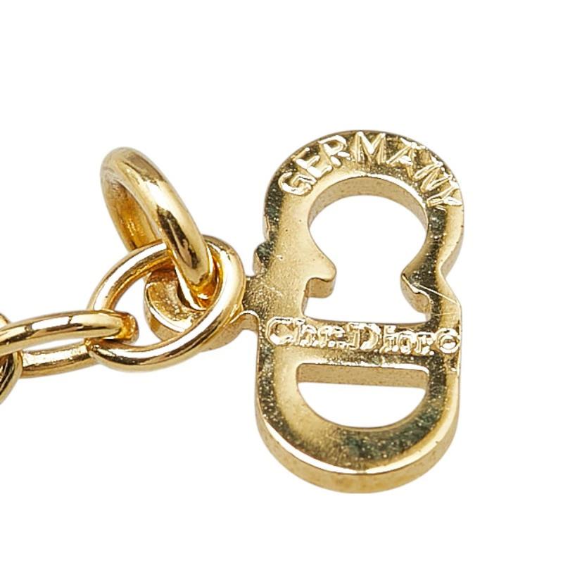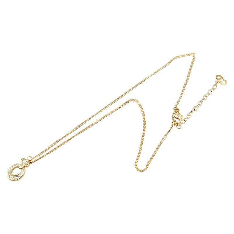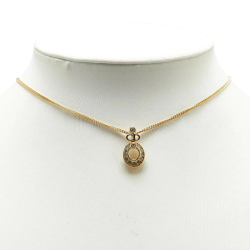 Pre-owned Dior CD logo rhinestone necklace, gold plated, women's.