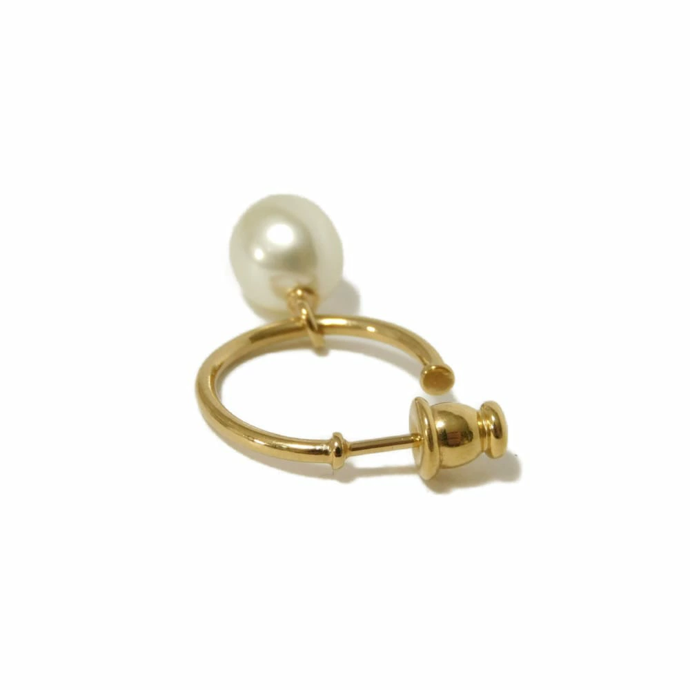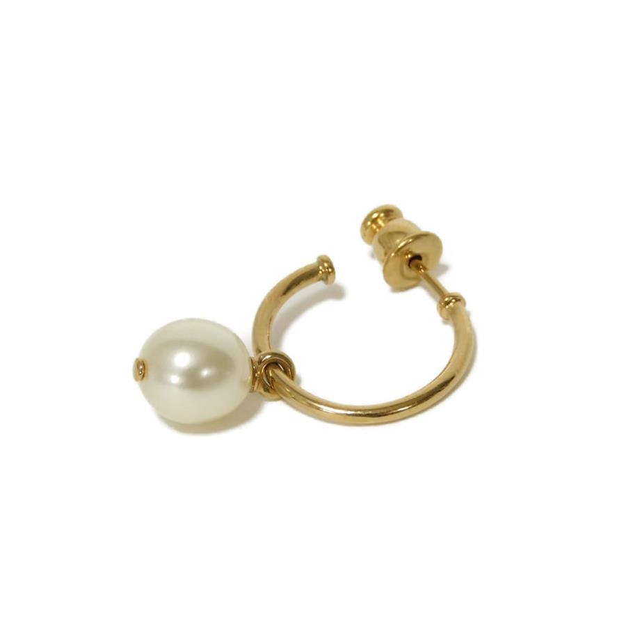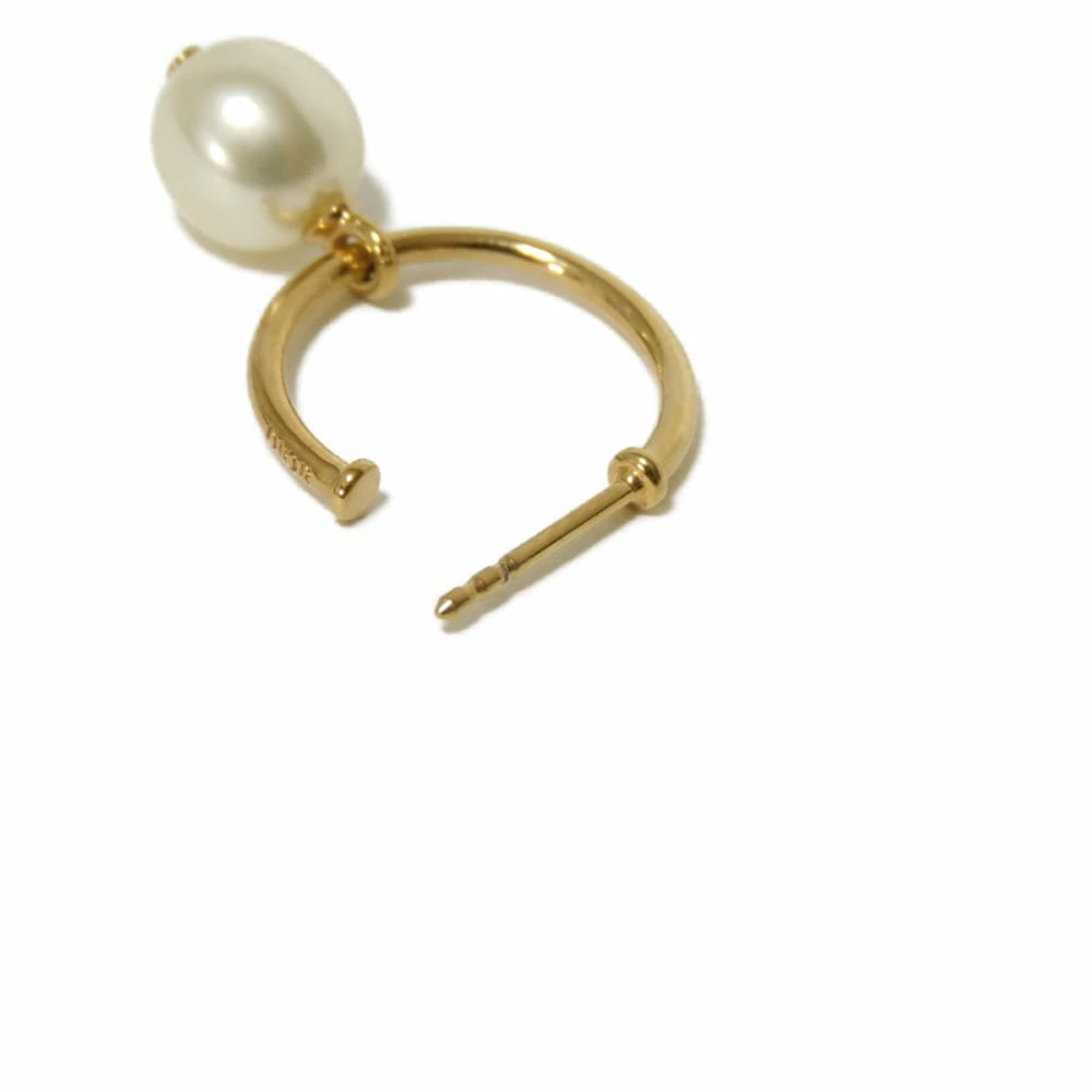 | ディオールのロゴが刻印された、フープリングにレジンパールが揺れる「Petit CD 片方のみ」スタッドピアスです。 |