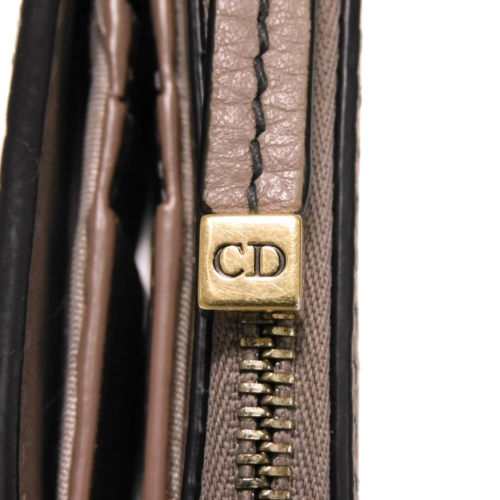 | 型押しカーフレザーにクリスチャンディオールのCDロゴと蜂モチーフが箔押しされた「ビー コンパクト ジップ ウォレット」スナップ二つ折り財布です。 |