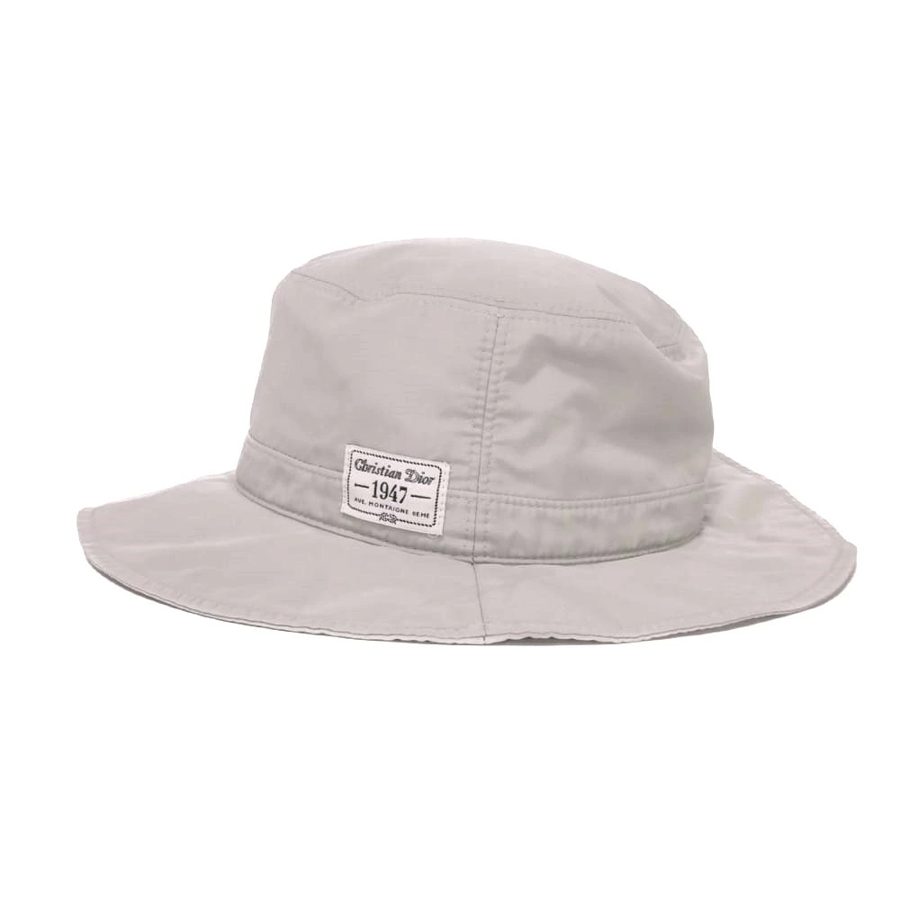 | ディオールの1947モチーフのタグがあしらわれた、コットン混ナイロン素材にライニングにオブリーク柄があしらわれた「サファリ バケット ハット」ストラップ付帽子です。 |