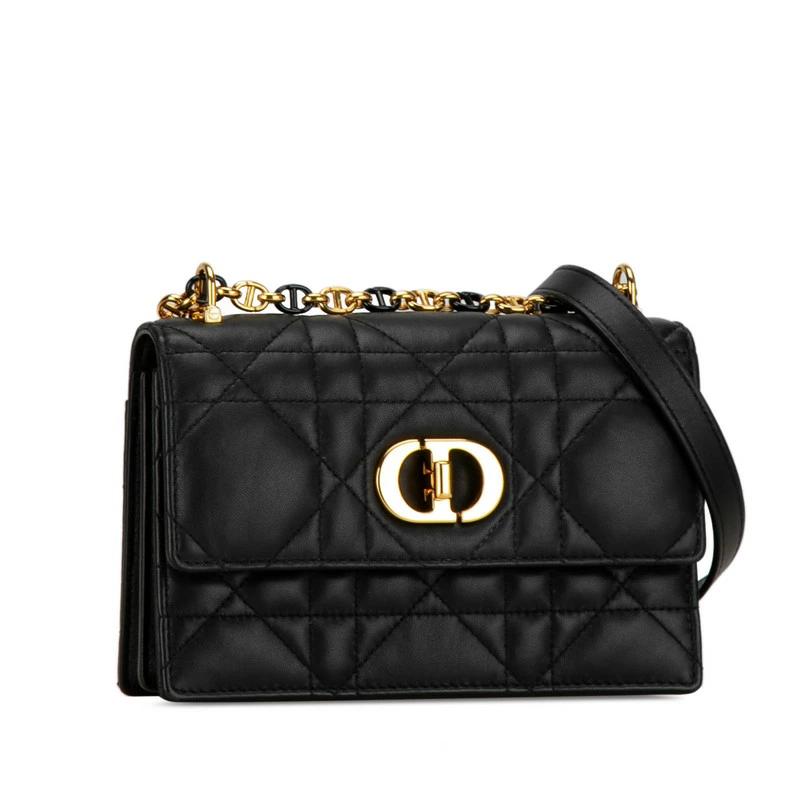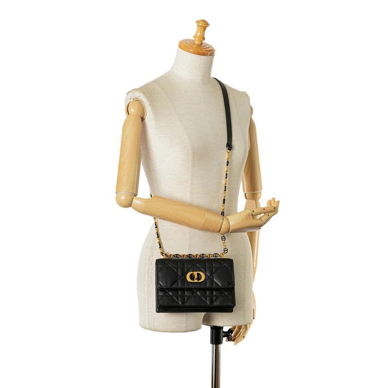 Pre-owned Dior Miss Caro Macrocannage Chain Mini Shoulder Bag in Black Lambskin. Women's.
