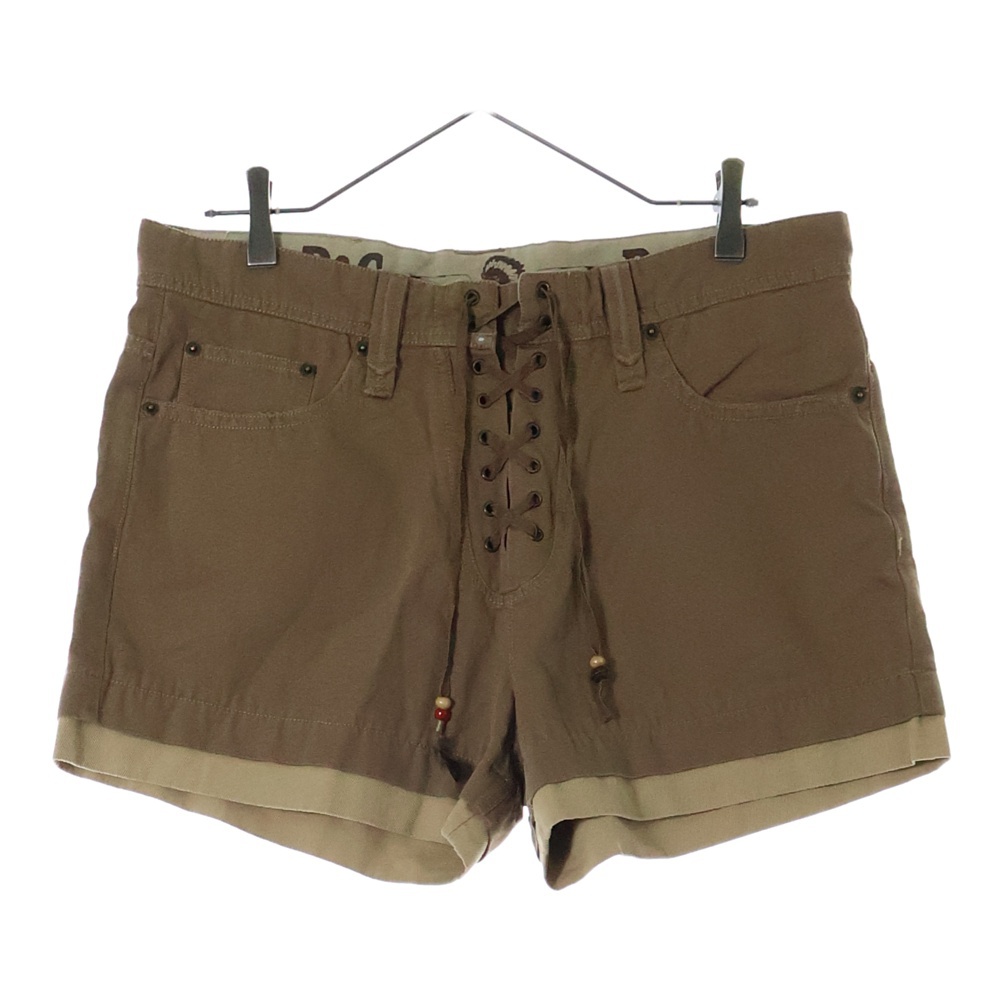 [モデル]レースアップデザイン インディアン レザーロゴパッチ コットン ハーフ ショートパンツ ショーツ ブラウン レディース RP0113/ST100