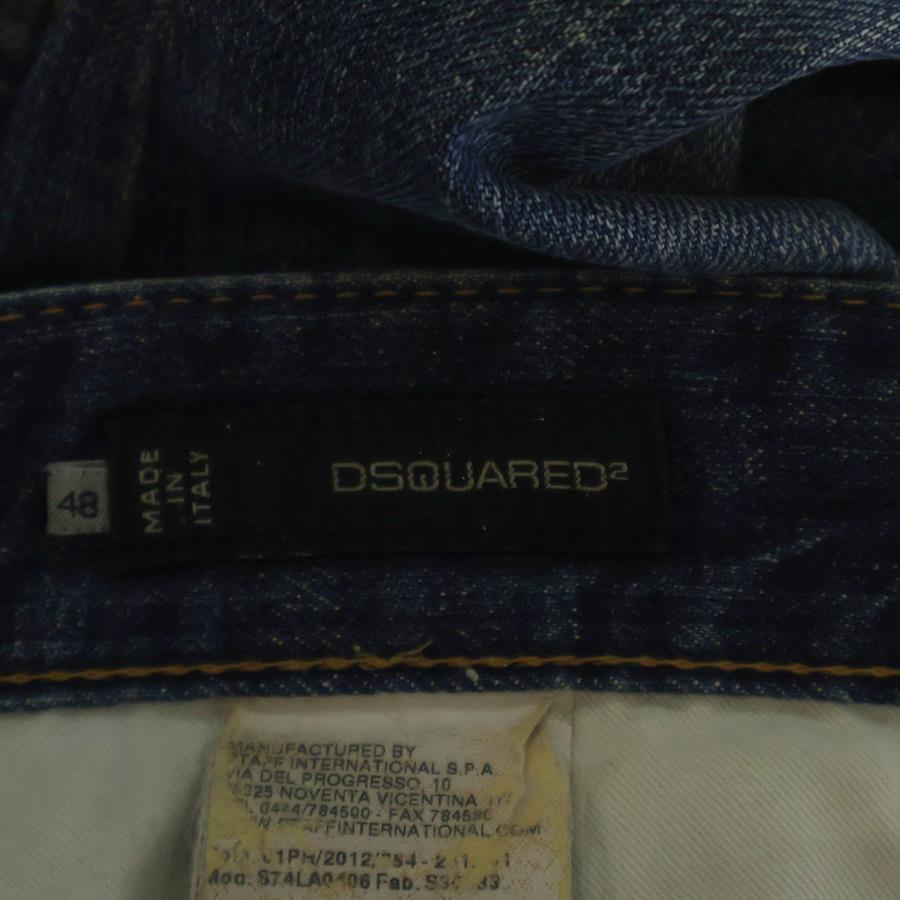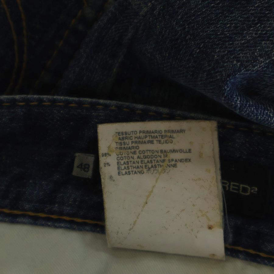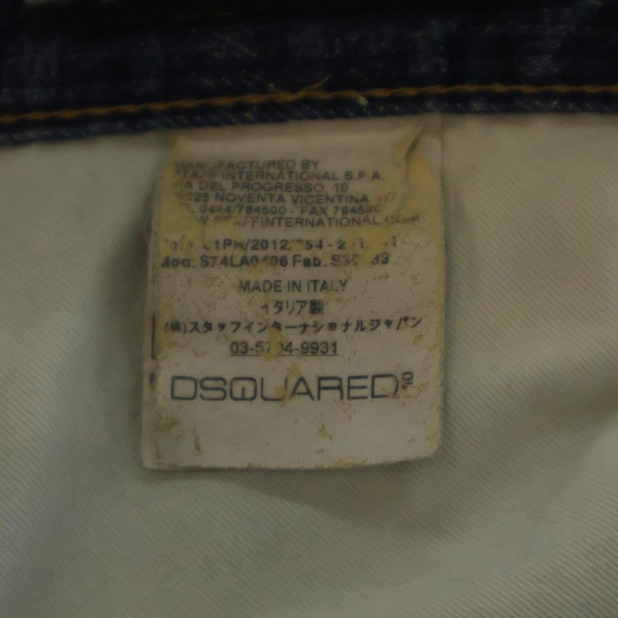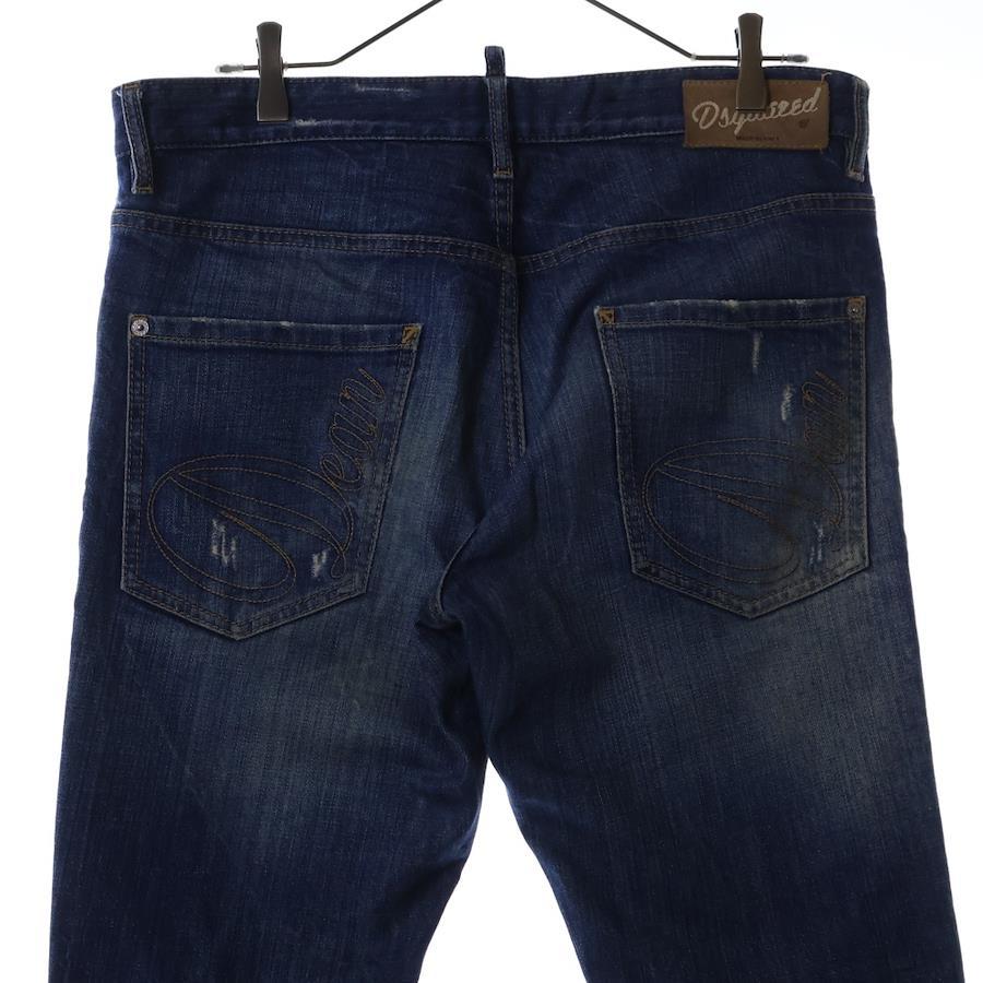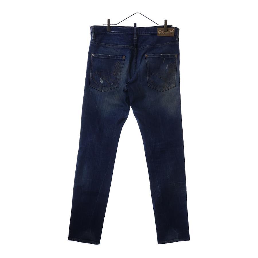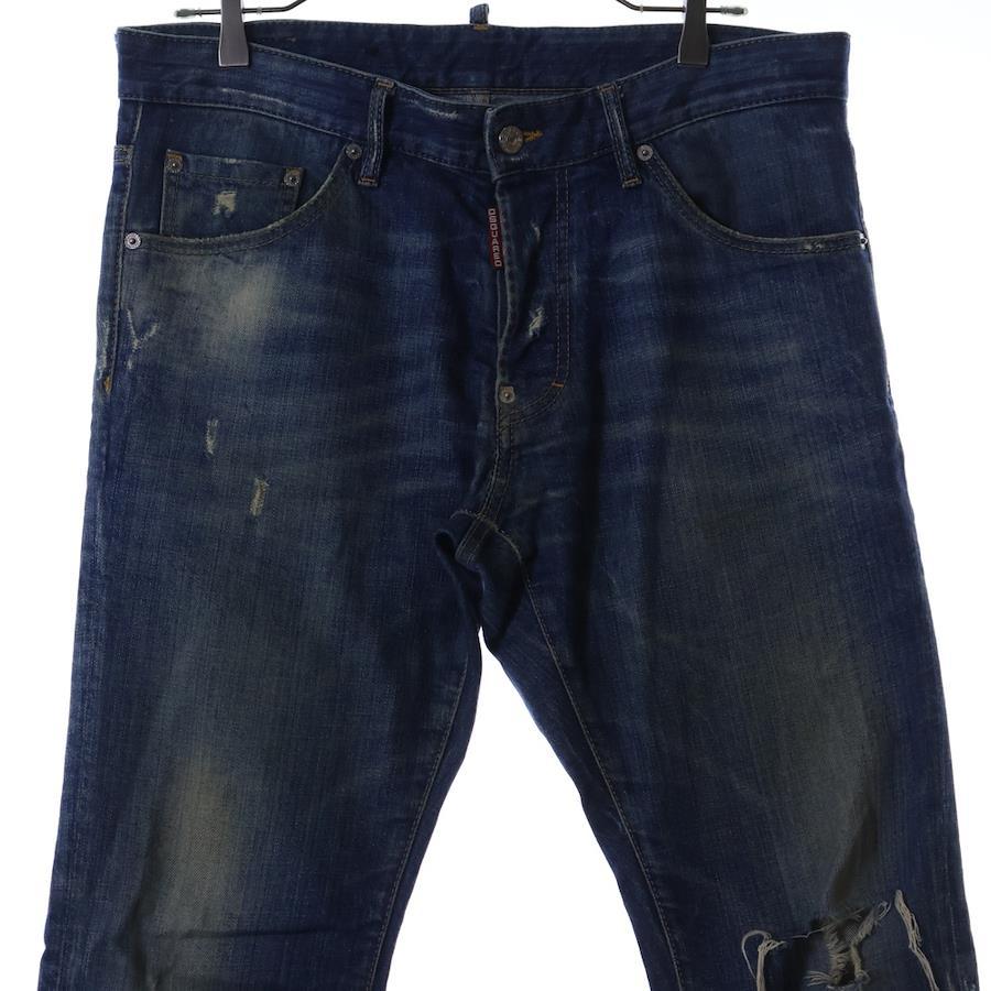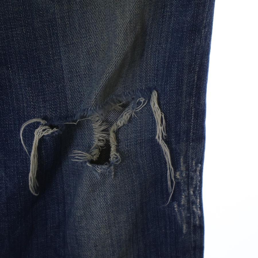 [モデル]ダメージ加工 レザーパッチ ボタンフライ スリムスキニー デニムパンツ ジーンズ インディゴ