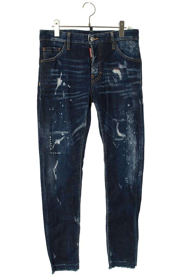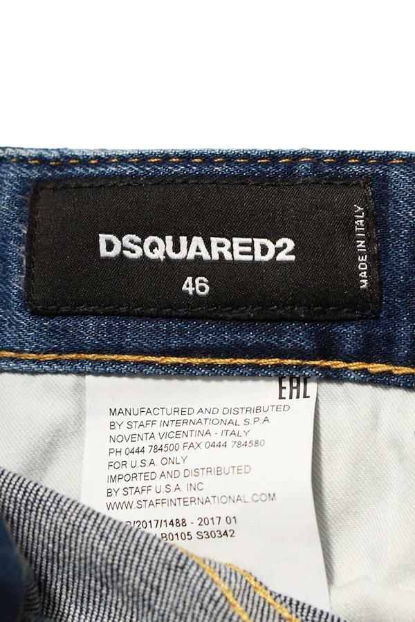 ランク:B (使用感がある商品)状態備考:加工による風合い、ダメージがあります全体的に若干の毛羽立ち、色褪せがありますブランド:ディースクエアードサイズ:46色:インディゴ実寸:ウエスト幅40.5cm 股上25.5cm ワタリ幅28.5cm 股下79cm 裾幅15.5cm重さ:-素材:(表地) コットン98%、ポリウレタン2% (ポケット裏地) ポリエステル65%、コットン35% (革) 牛革付属品:なしその他特徴:ボタンフライデザインです管理番号:10831-251027-0132
