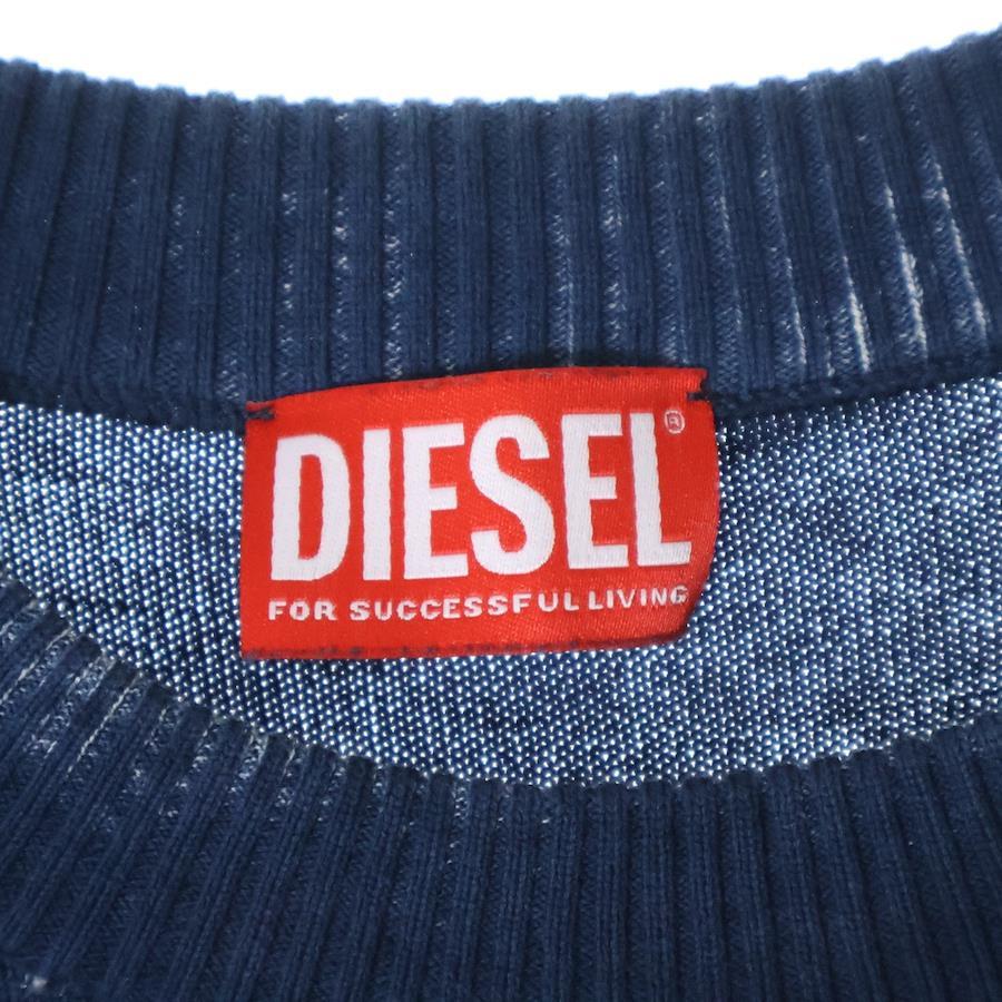 Diesel 24SS K-LARENCE-B Bleached Crew Neck Knit Sweater, Navy/White, A11187, Medium, Navy/White