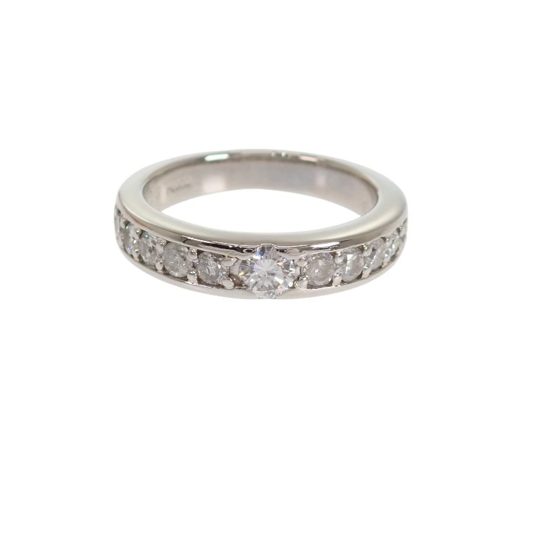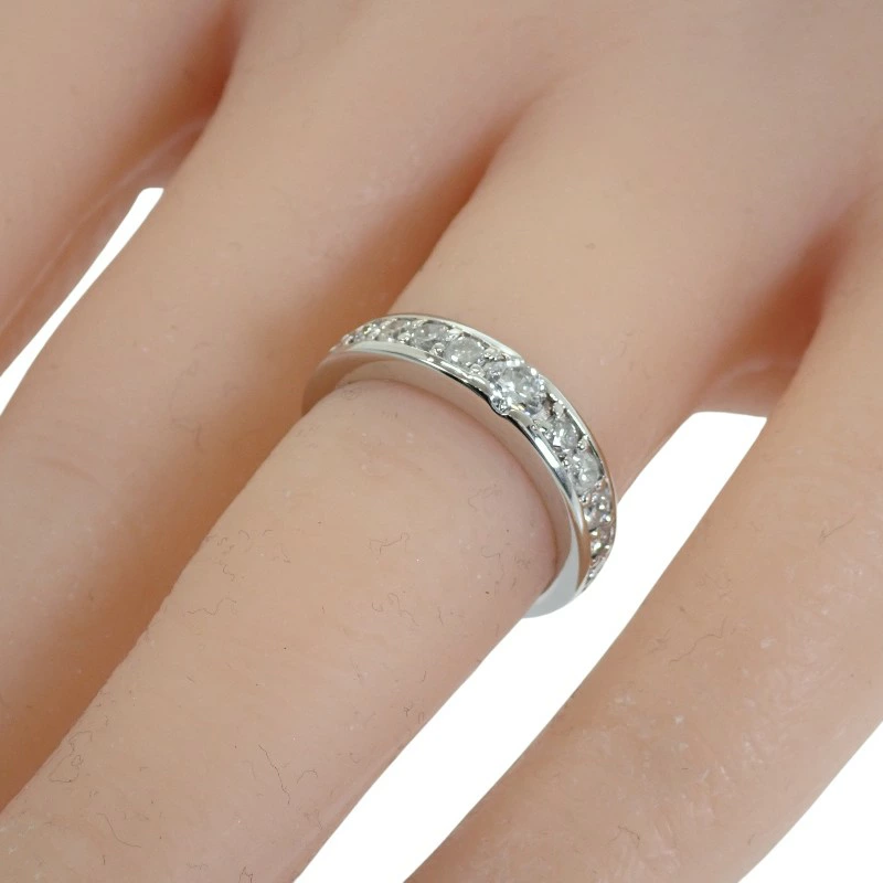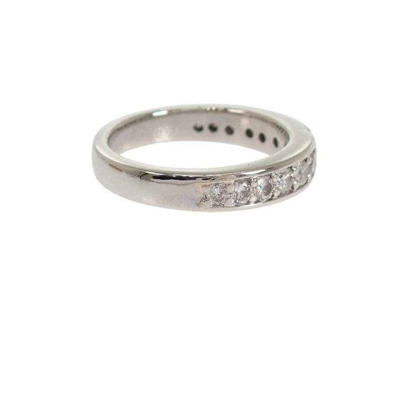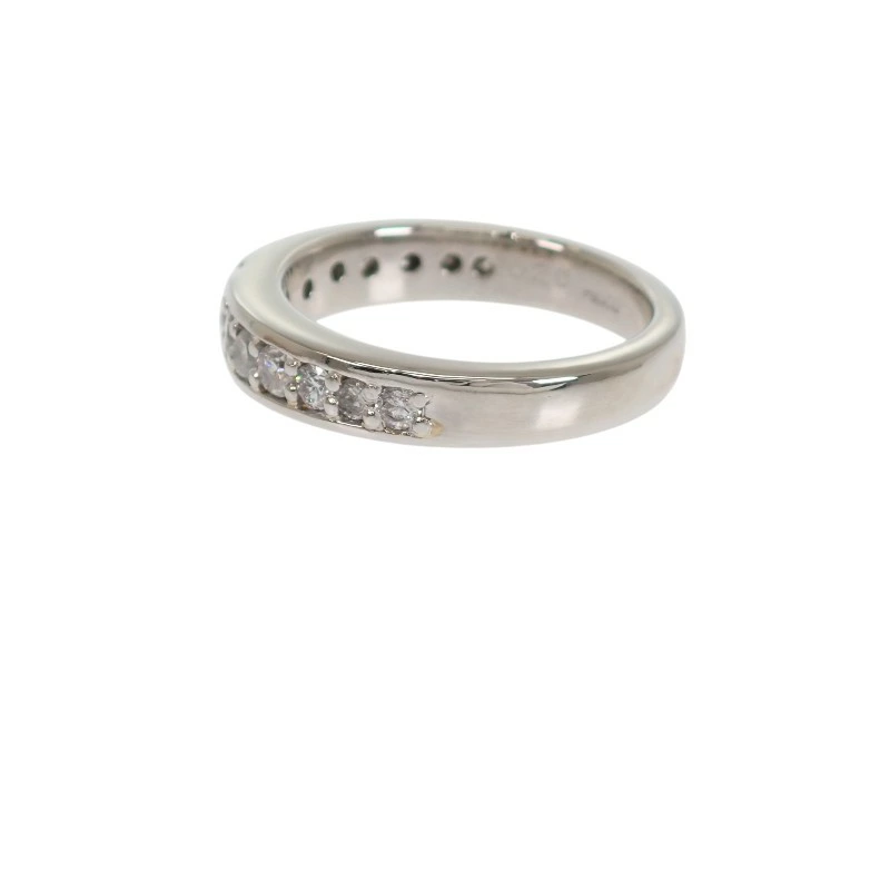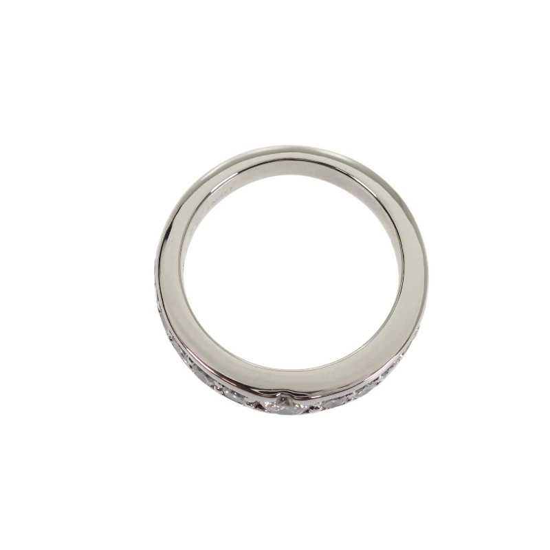 リング半周にわたり、丁寧にセッティングされたダイヤモンドは中央に向かって存在感を高めるよう配置され、シンプルながらも華やかさと奥行きを演出しています。