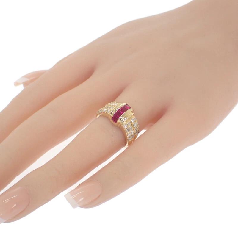 美しいルビーとダイヤモンドの煌めきが指元を照らす、デザインリングです。