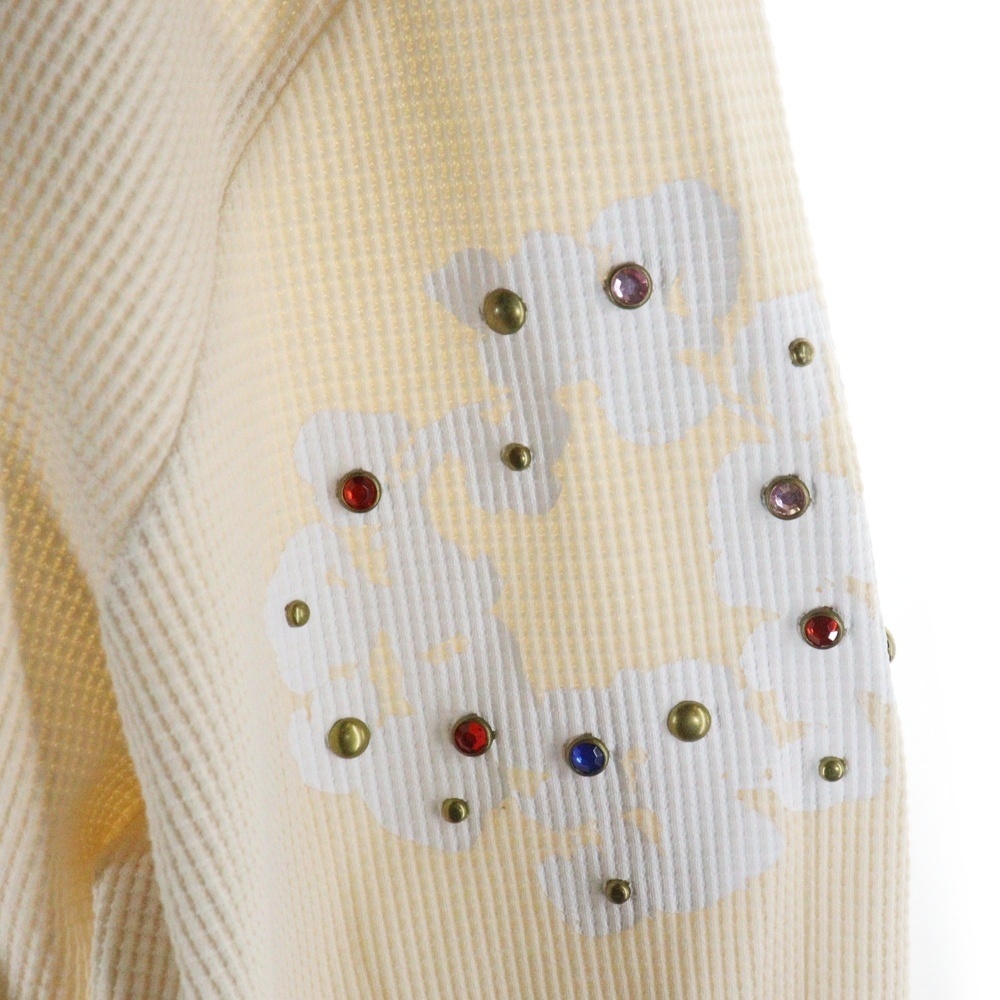 [モデル]RHINESTONE COTTON WREATH THERMAL ラインストーン コットンリース サーマル ロングスリーブカットソー アイボリー