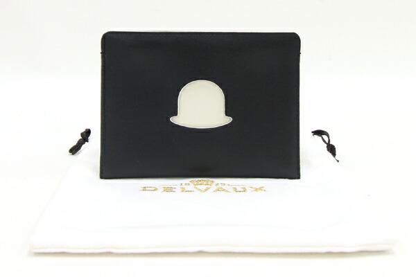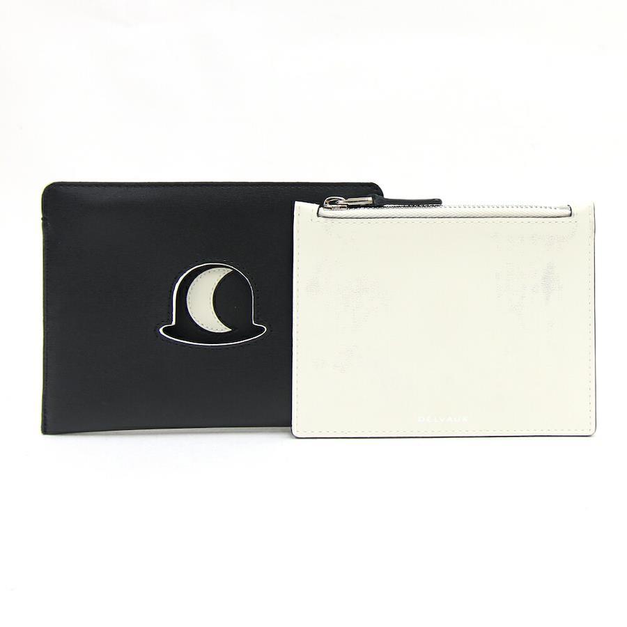 デルヴォーコインケースブラックオフホワイトレザー中古カードケース小銭入れ黒白ハットメンズレディースDELVAUX