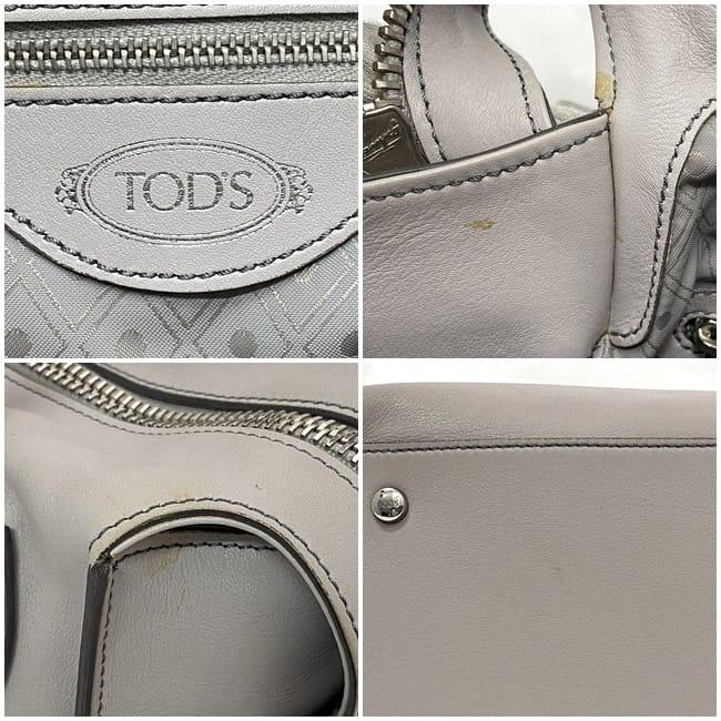 トッズ 2way バッグ ec-22457 グレー 美品 レザー 中古 TOD'S クロスボディ ファスナー ハンドバッグ 肩掛け 灰色 定番 人気 レディース メンズ 本革 シンプル 自立 普段使い 使いやすい ショルダーバッグ ブランド 本物 鑑定済み