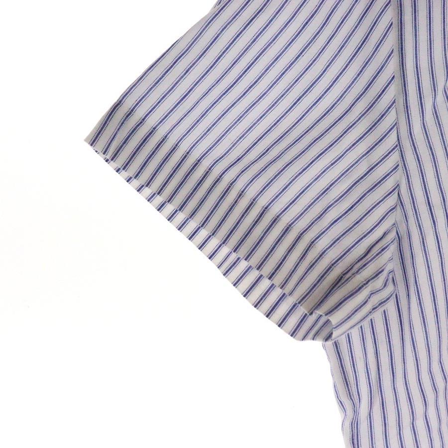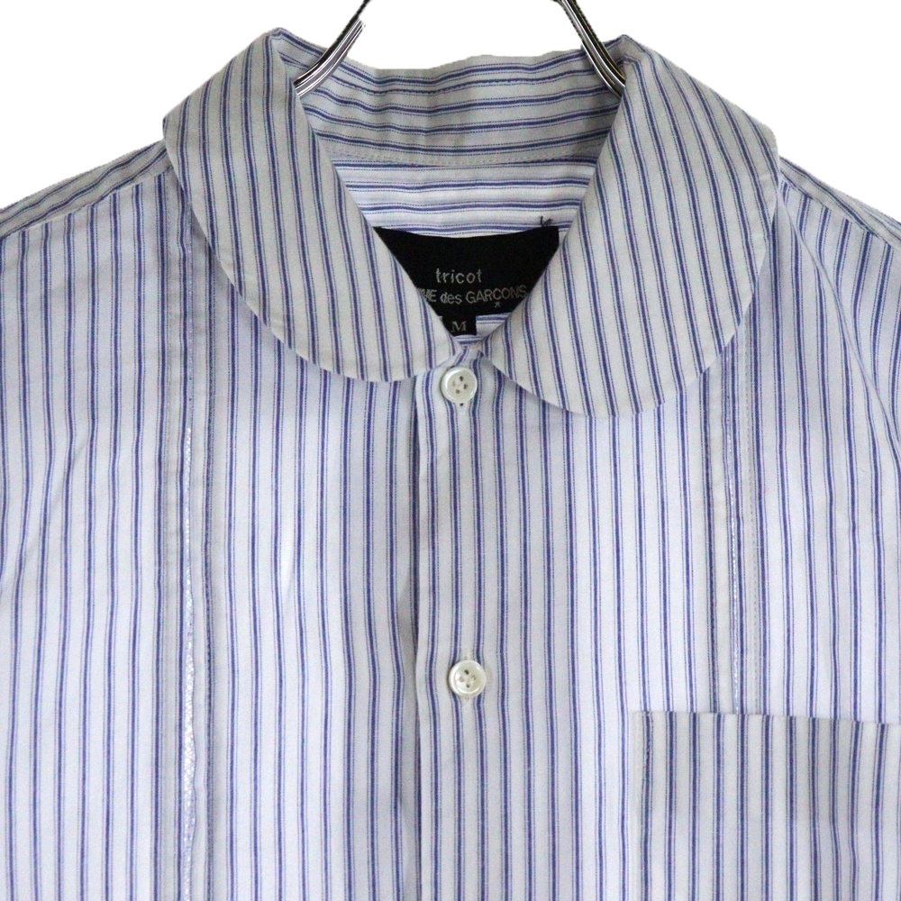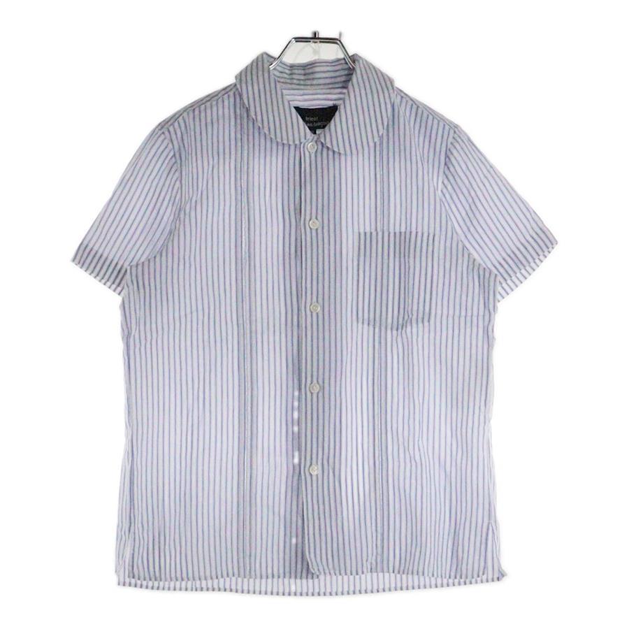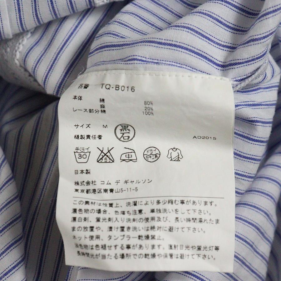 Trico Comme des Garçons 16SS AD2015 Lace-Lined Round Collar Striped Cotton Blouse, Short Sleeve, Blue/White, Women's, Size M (TQ-B016), Blue/White