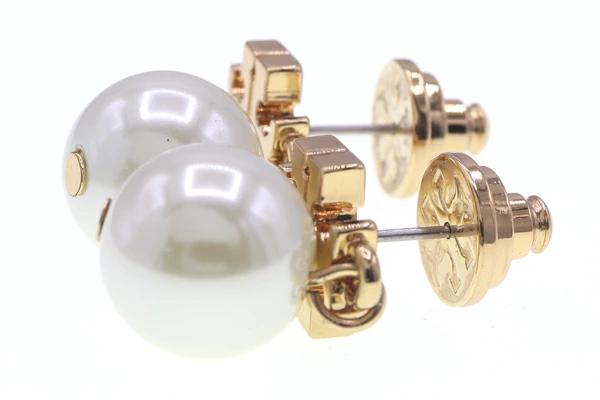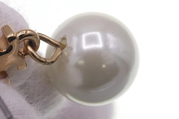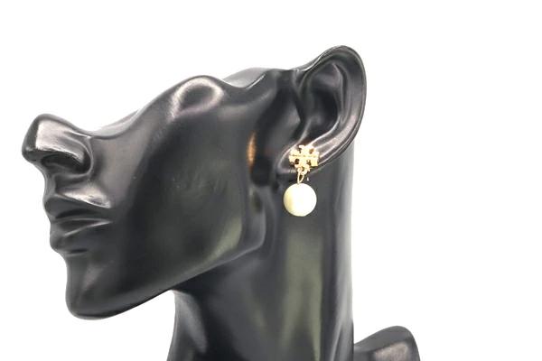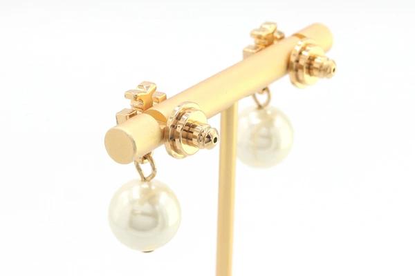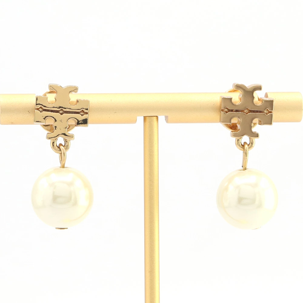 Pre-owned Tory Burch earrings 48298 in gold, metal, and crystal pearl. Logo. Women's. TORY BURCH.
