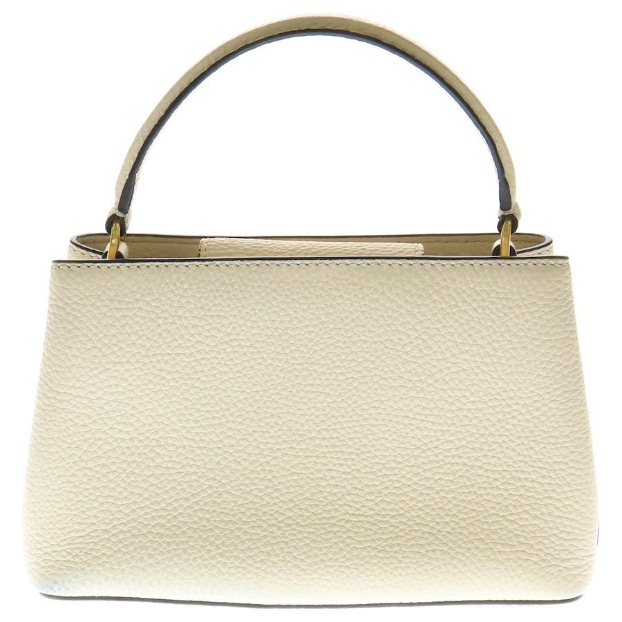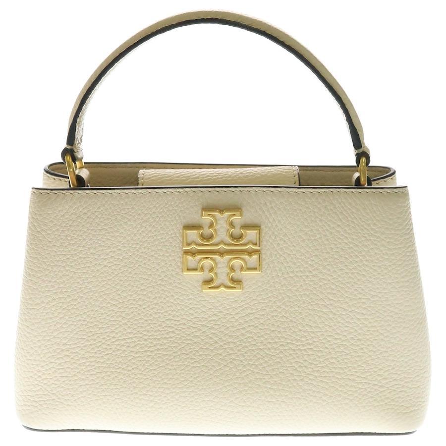 [モデル]ロゴ トップハンドル 2WAYバッグ ハンドバッグ ショルダーバッグ アイボリー ホワイト ゴールド金具 レザー