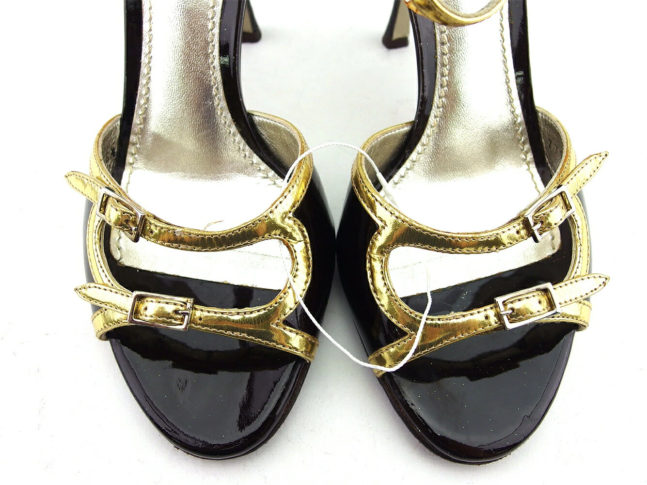 | 備考 | 表記サイズ:35 1/2 (日本サイズ:約22.5cm) ソール幅:約8.5cm ソール全長:約24cm ヒール:約9cm ストラップ:最長約26.5cm(5段階調節可能) 参考日本サイズはあくまで目安です。メーカーによって、または足の形、幅などによってサイズは微妙に違ってきます。あくまで参考程度にご覧下さい。 |