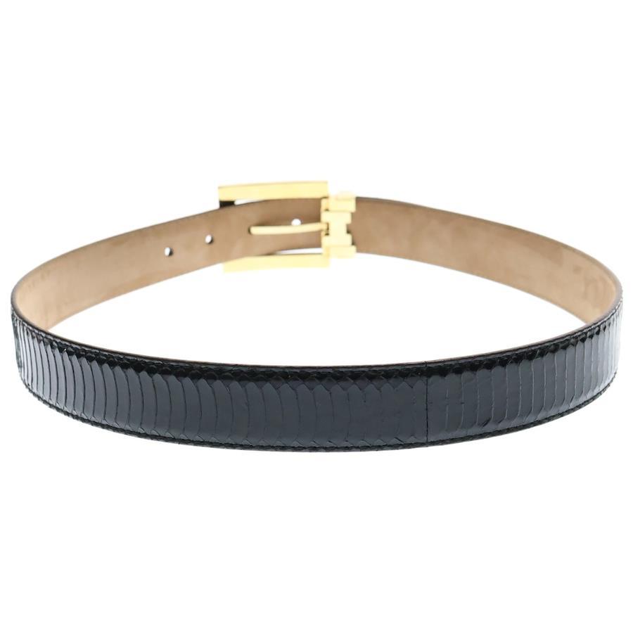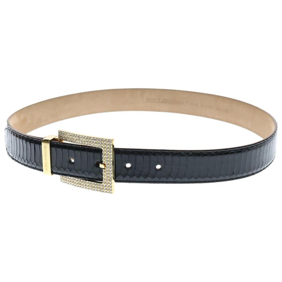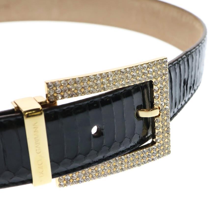 [モデル]ジルコニア ラインストーン付き パイソンベルト ブラック/ゴールド