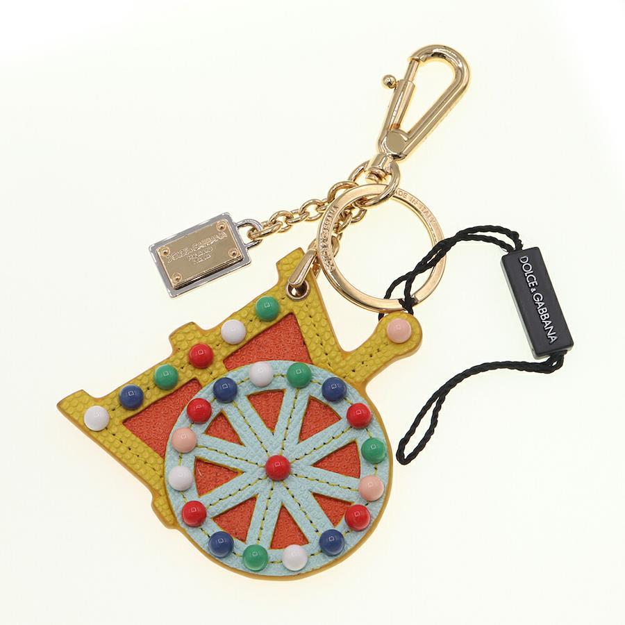 ドルチェ&ガッバーナキーホルダーBI0722イエローマルチカラーレザー中古キーリングバッグチャームレディースDOLCE&GABBANA