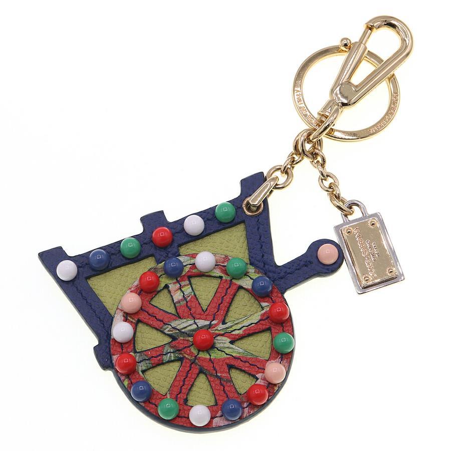 ドルチェ&ガッバーナキーホルダーBI0722ブルーマルチカラーレザー中古キーリングバッグチャームレディースDOLCE&GABBANA