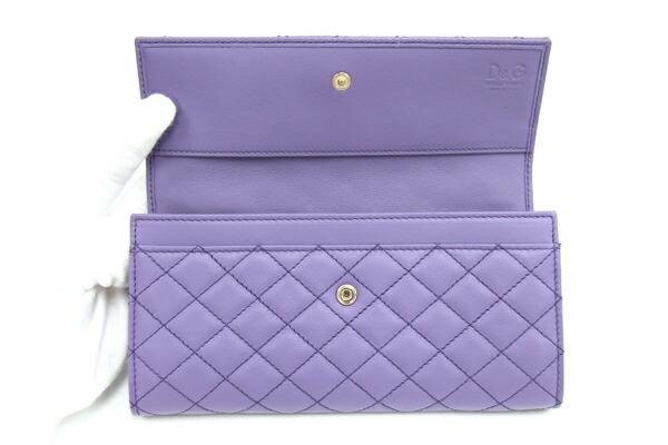 ドルチェ&ガッバーナ二つ折り長財布DPD389パープルレザー中古ロングウォレットキルティングD&GロゴレディースDOLCE&GABBANA