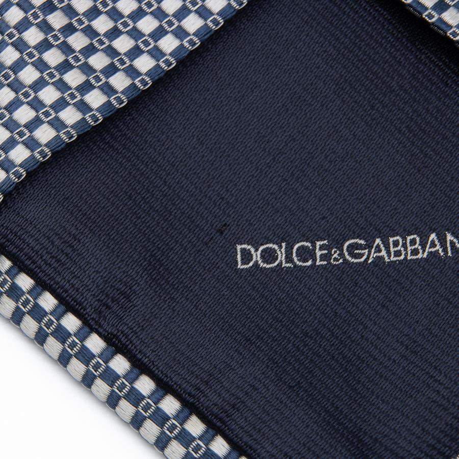 Dolce & Gabbana 男女寬邊提花領帶,藍色和銀色真絲可選。這款亮面方形或菱形領帶是商務或休閒裝的理想之選,可為任何造型增添一抹時尚氣息。義大利製造。產品代碼:P162。