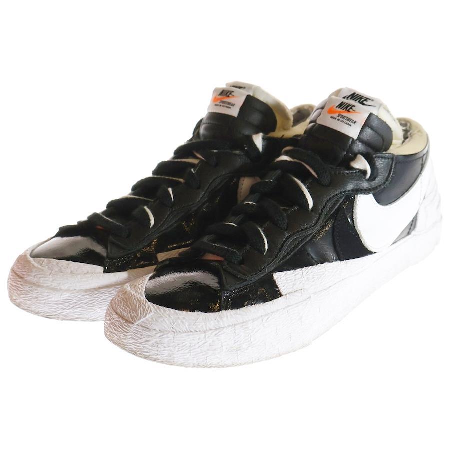 [モデル]×SACAI BLAZER LOW BLACK PATENT ナイキ サカイ ブレーザー ブラックパテント ローカットスニーカー US8/26.0cm ブラック