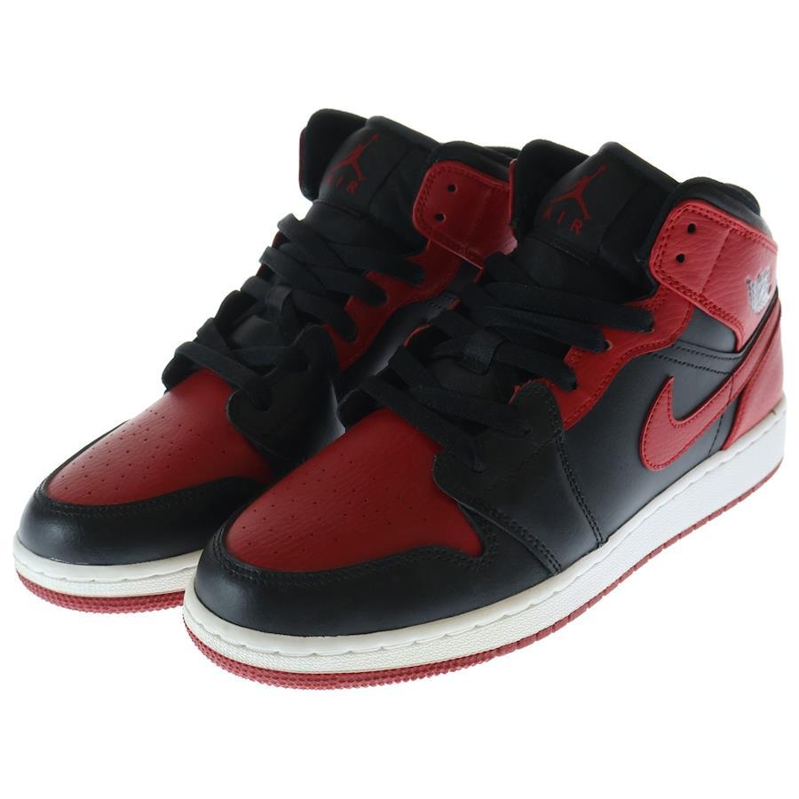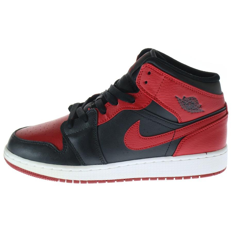 [モデル]KIDS GS AIR JORDAN 1 MID BERD エア ジョーダン1 ブレット ミッドカットスニーカー US7.0Y/25.0cm ブラック/レッド 55425-074