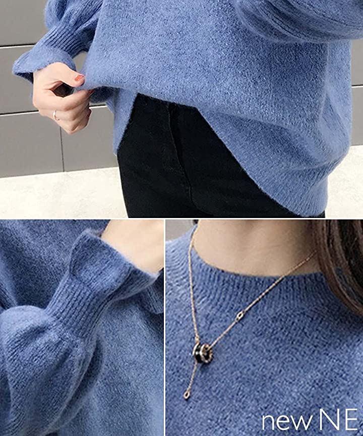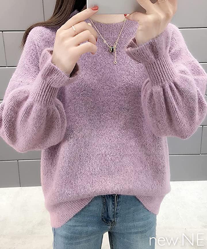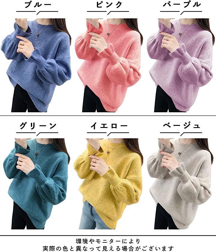 シンプルな無地ニットながら、袖口フリルで人と差がつくオシャレセーターの登場です今年人気の着心地抜群ボトルネックデザイン。