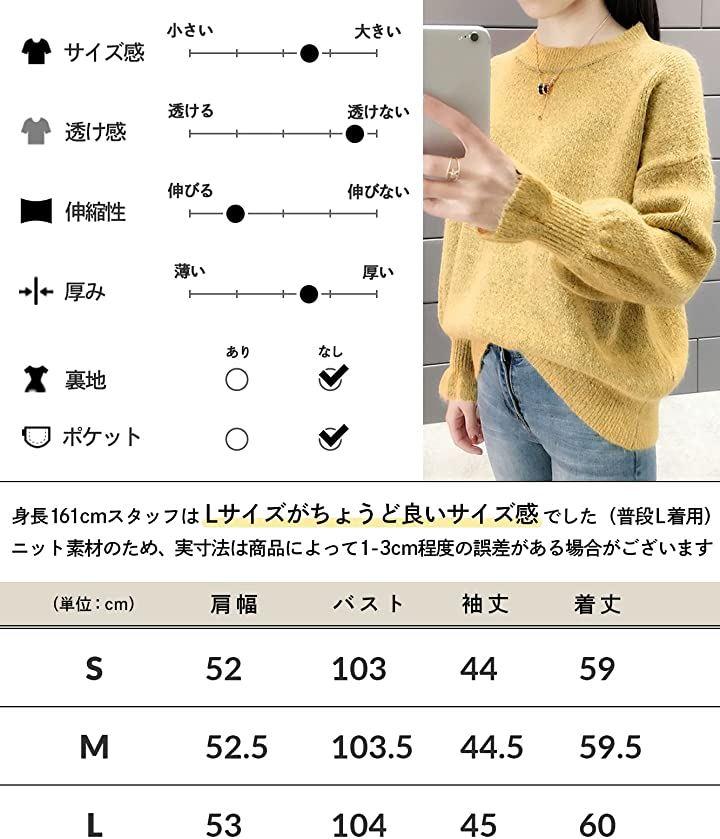 *サイズ肩幅/バスト/袖丈/着丈(cm)(S)52/103/44/59(M)52.5/103.5/44.5/59.5(L)53/104/45/60*ニット素材のため、実寸法は商品によって1-3cm程度の誤差がある場合がございます
