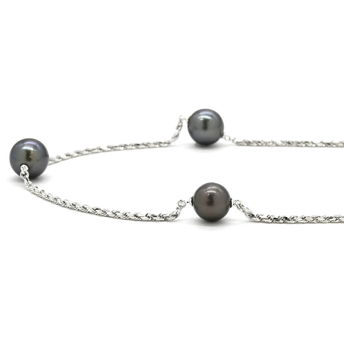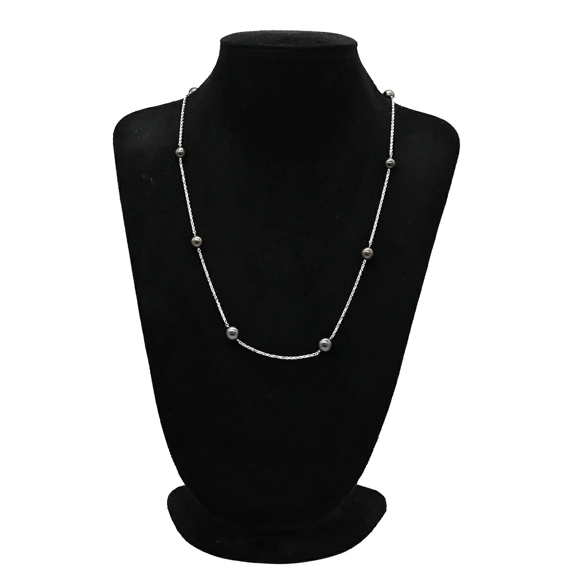 ノンブランド NON BRAND ネックレス ステーションネックレス K18WG パール パールブラック 黒 黒蝶パール 真珠 750 ホワイトゴールド ブラック パール - レディース定番 人気 美品 【中古】