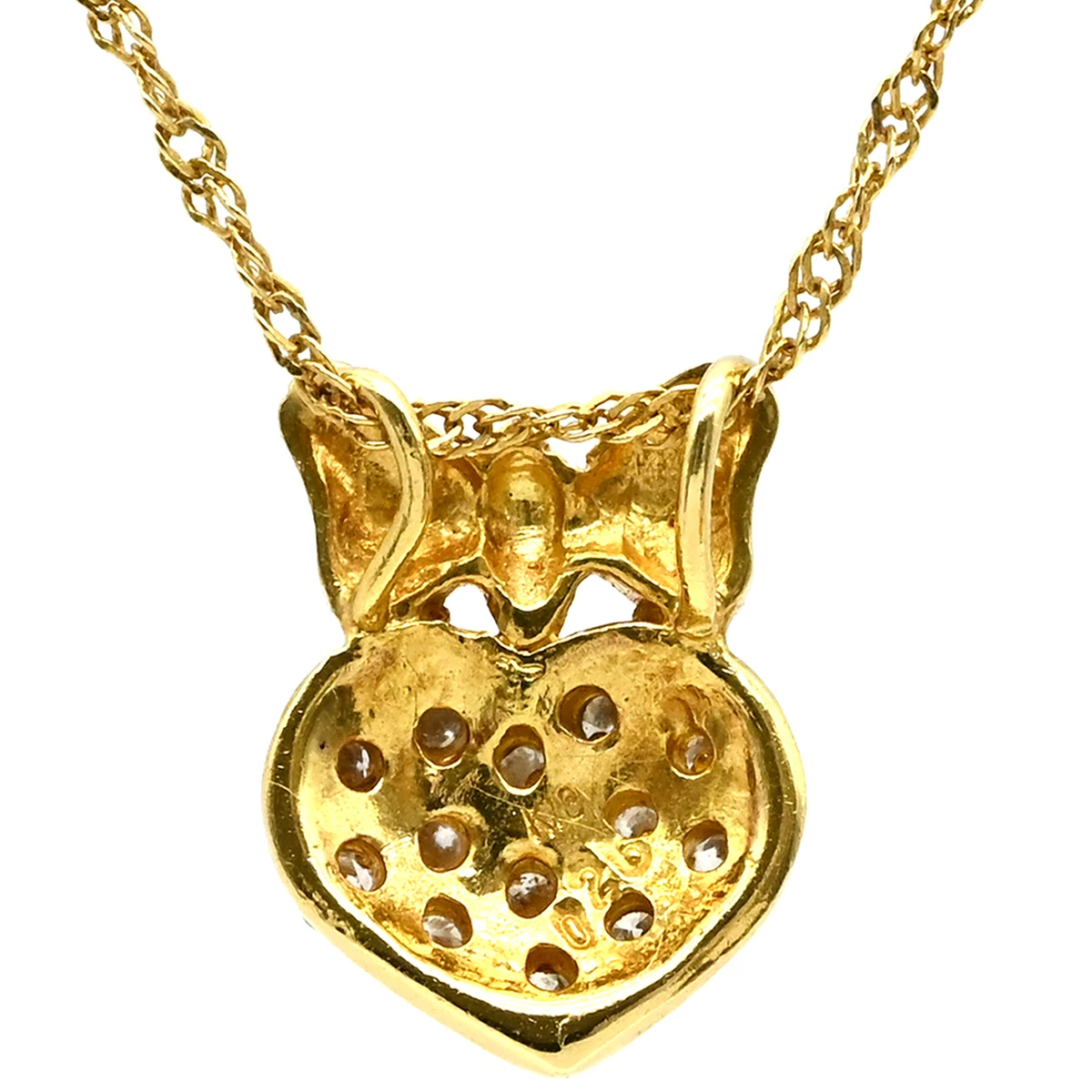 ▲クリックで拡大されますノンブランド NON BRAND ネックレス ハート リボン ダイヤペンダント K18YG ダイヤモンド イエローゴールド 750 18K レディース定番 人気 美品 【中古】