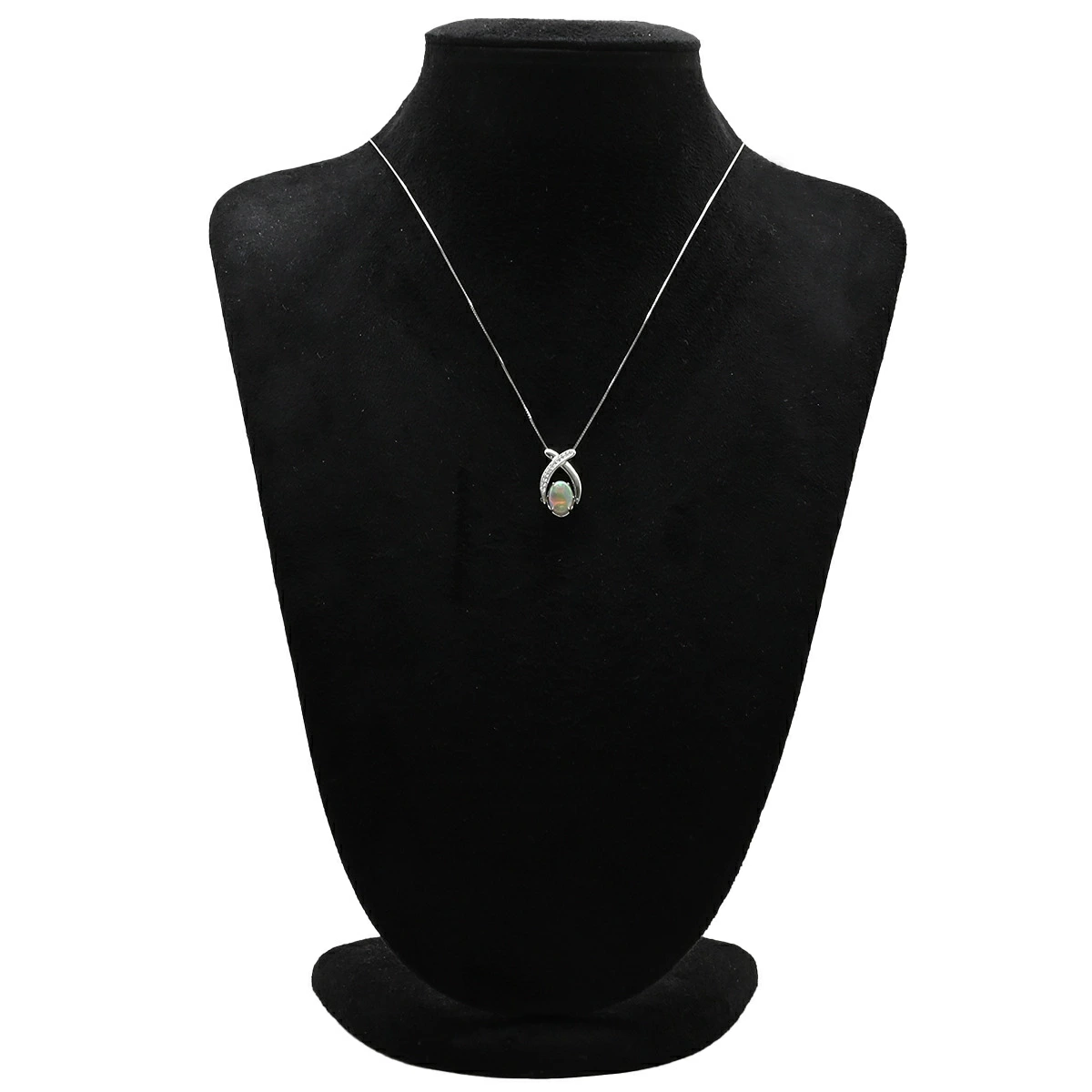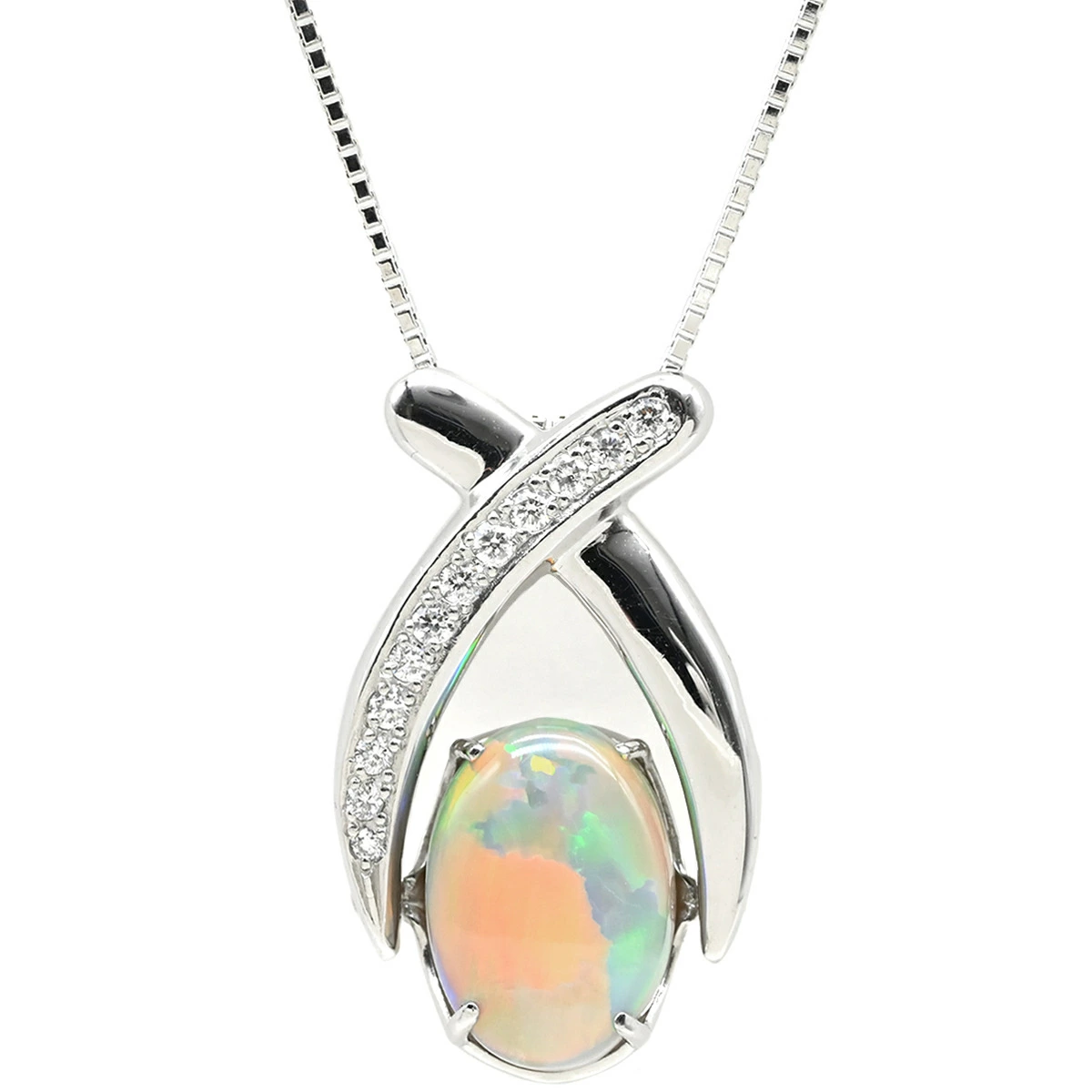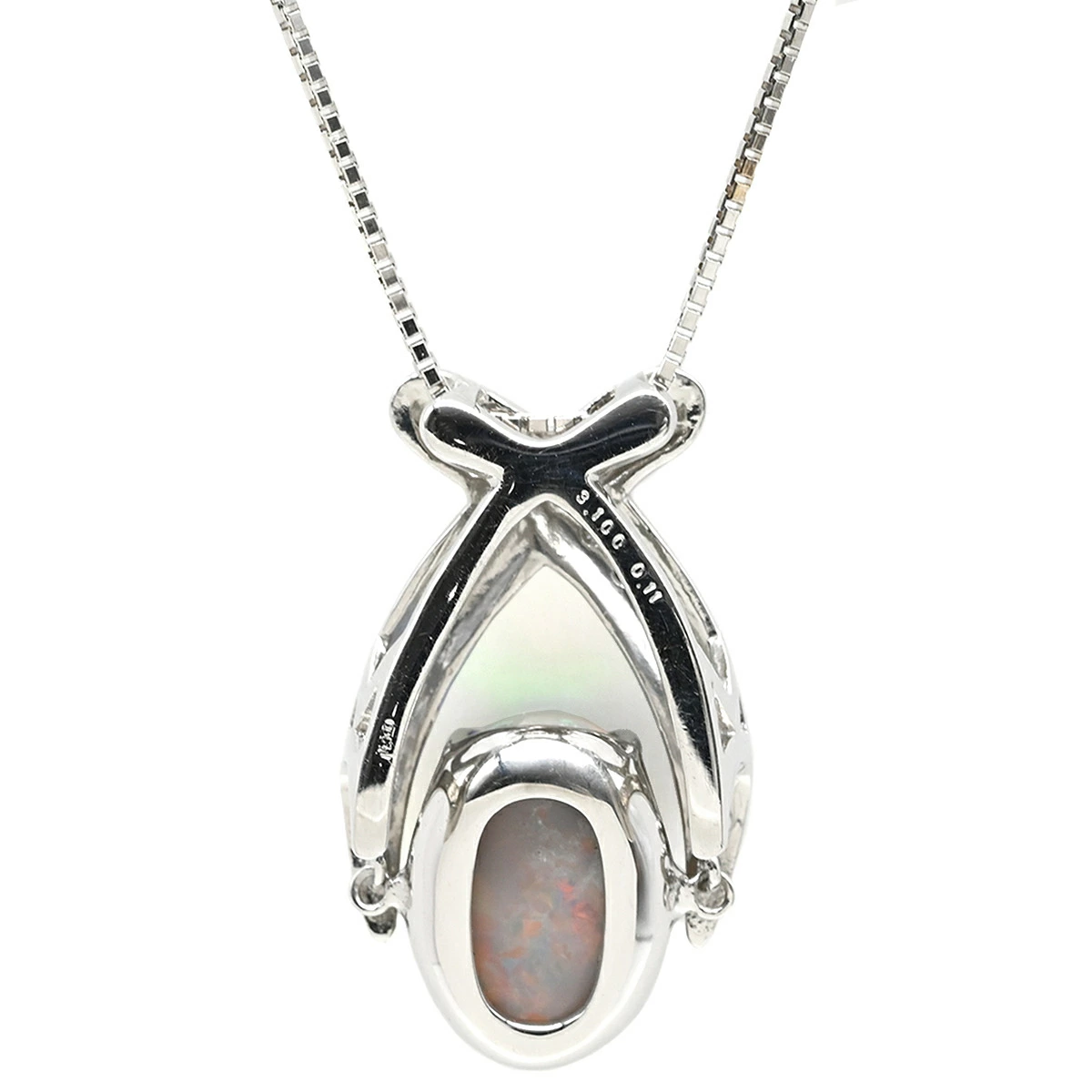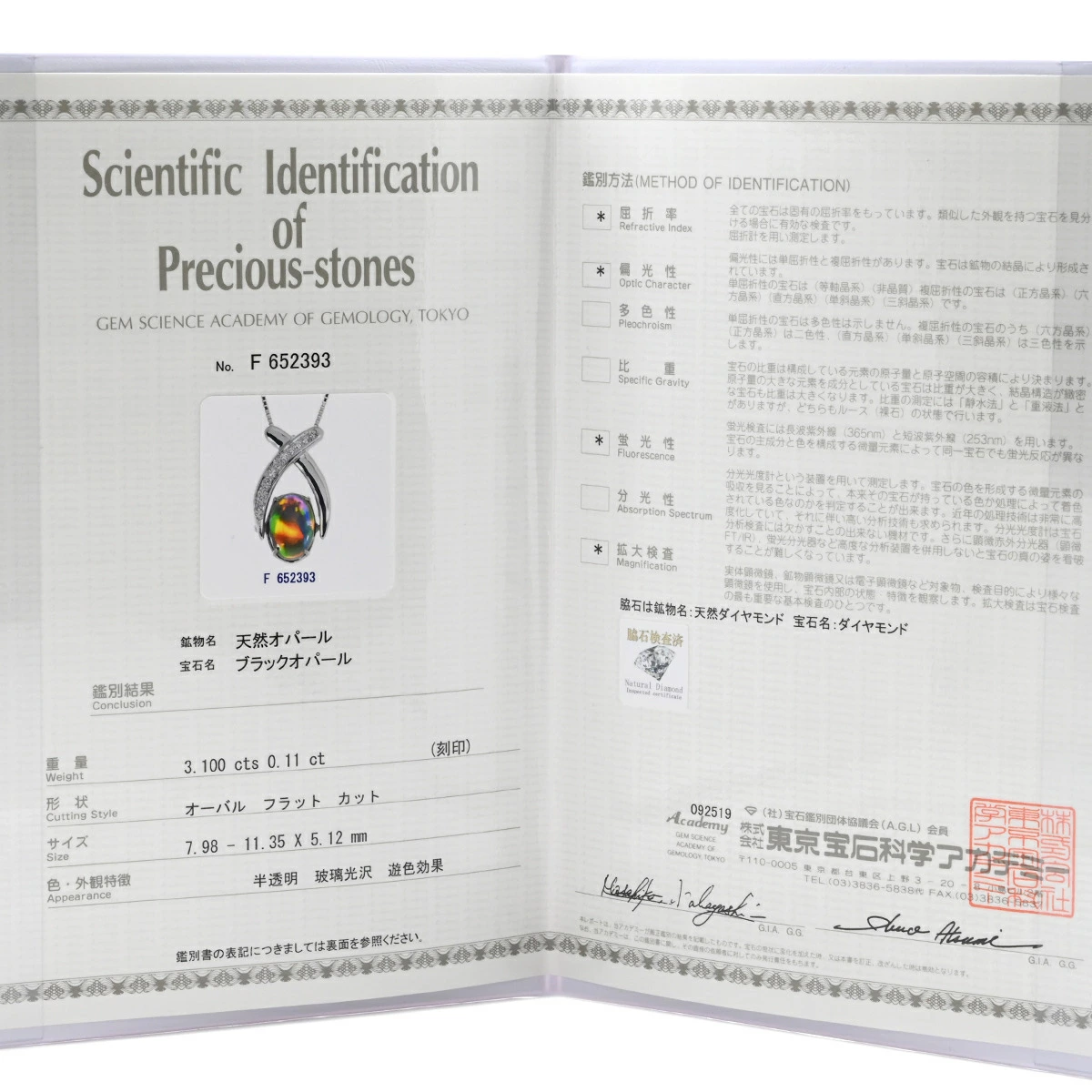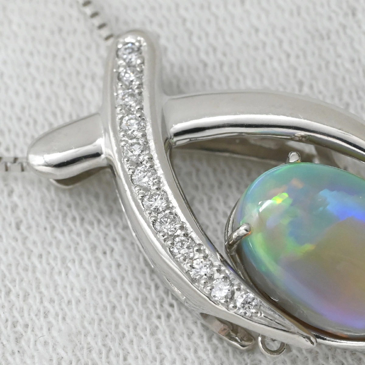 ▲クリックで拡大されますノンブランド NON BRAND ネックレス ブラックオパール ダイヤペンダント Pt900 ブラックオパール ダイヤモンド K18WG(チェーン) プラチナシルバーxホワイトゴールド - レディース 【中古】