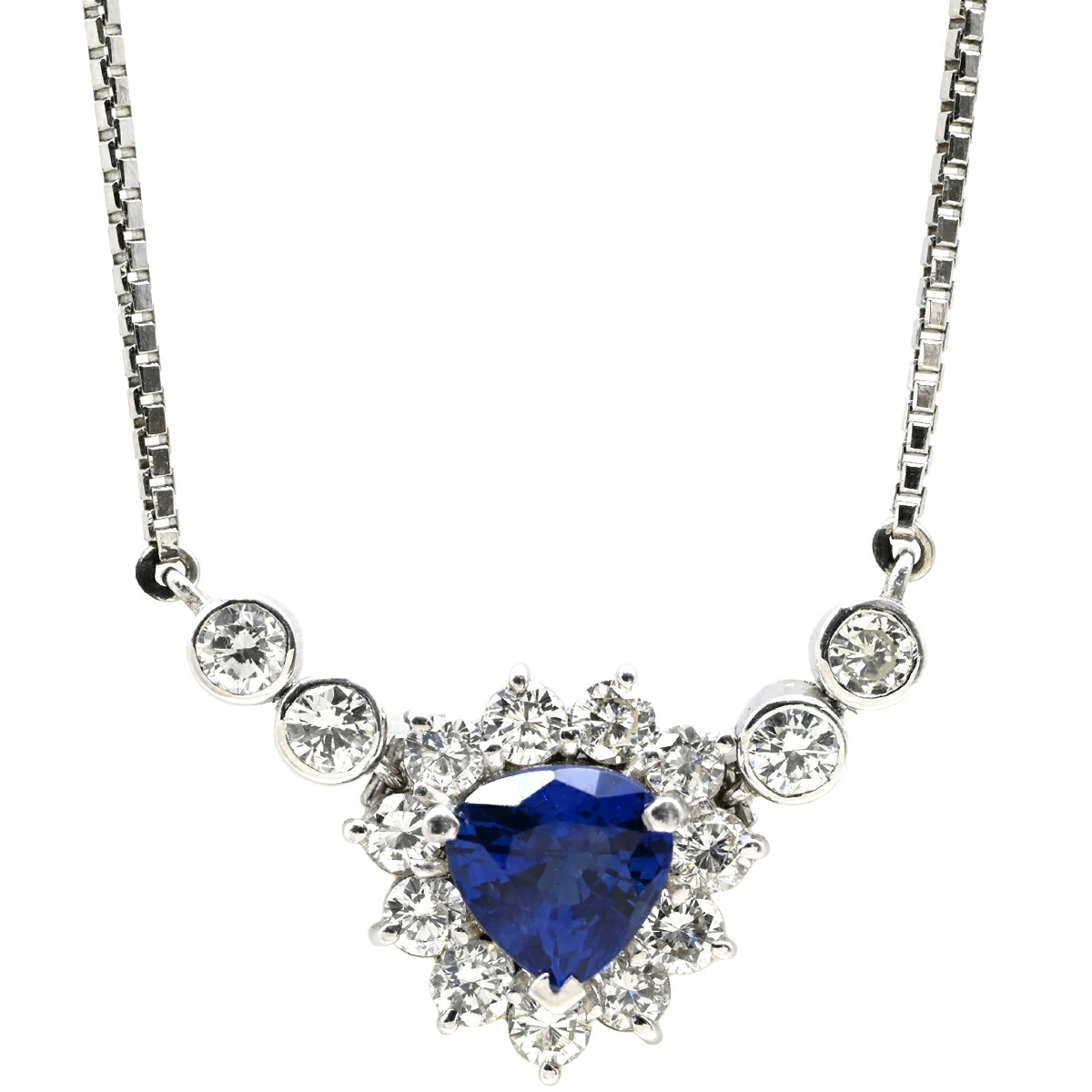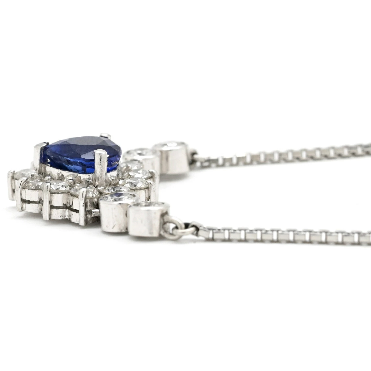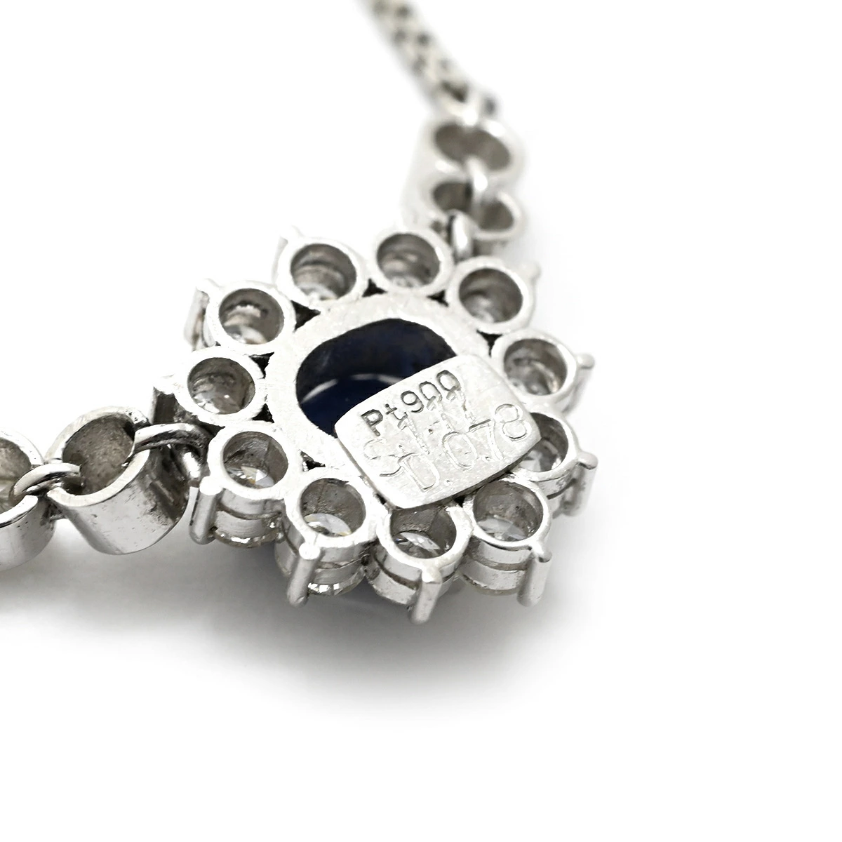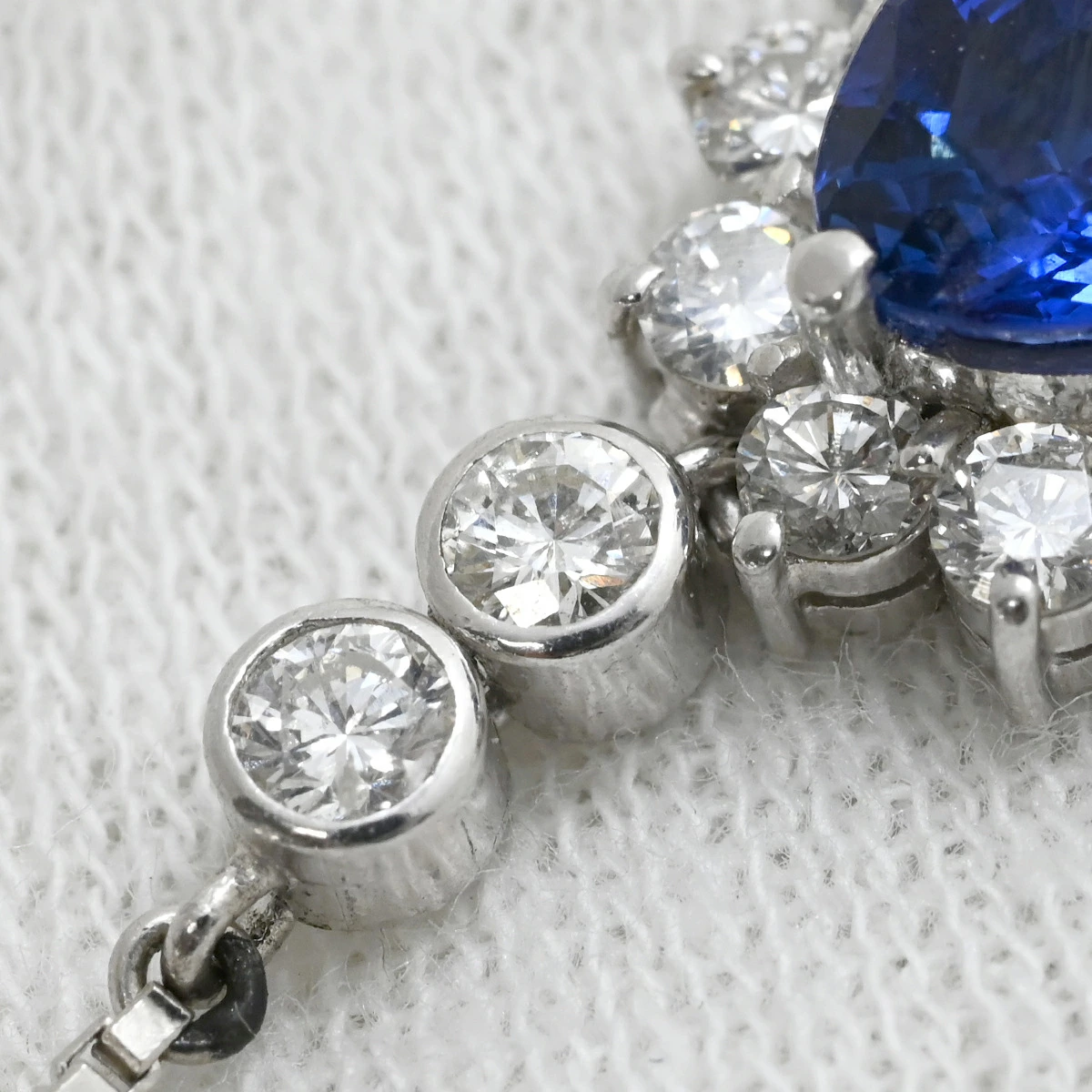 ▲クリックで拡大されますノンブランド NON BRAND ネックレス ブルーサファイア ダイヤペンダント Pt900 サファイア ダイヤモンド Pt850(チェーン) プラチナシルバー 青 ブルー - レディース定番 人気 美品 【中古】