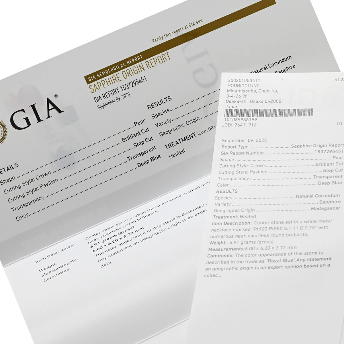 | 素材 | Pt900 / サファイア/ ダイヤモンド/ Pt850(チェーン) |