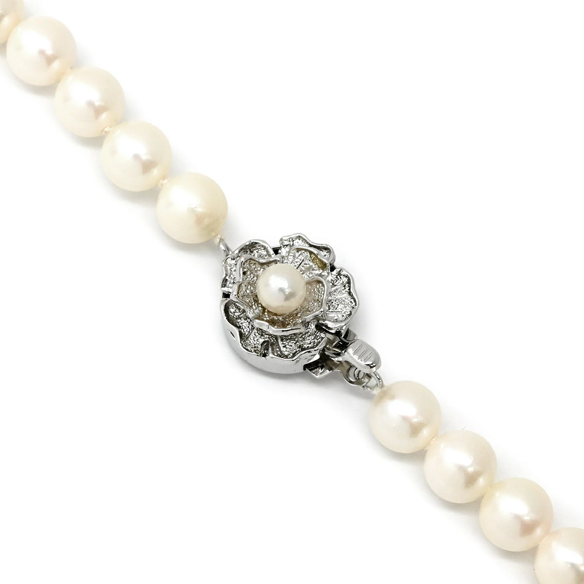 ▲クリックで拡大されますノンブランド NON BRAND ネックレス 7mm パール ペンダント パール シルバー パールホワイト 真珠 シルバー プリンセスサイズ 43.5cm フォーマル 一連 ワンタッチ 花カン - レディース定番 人気 美品 【中古】