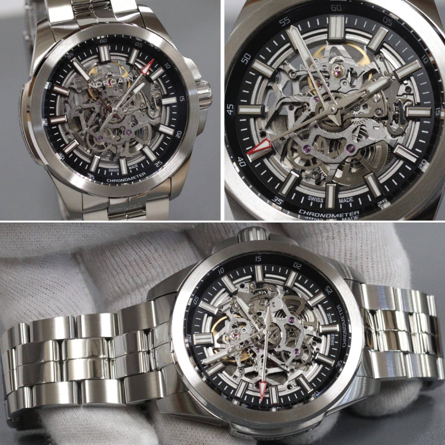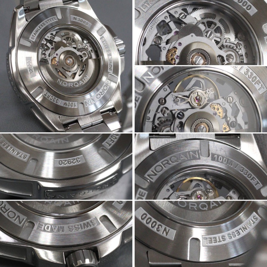 ノルケインのメンズウォッチ、インディペンデンス 22 スケルトン(N3000.07S01.B01.S01)N3000S03A/301/102SIの中古品です。オールスケルトンのスペシャルエディションです。ベゼルに小傷があり、1時 5時位置にわずかに欠けがあります。ベルトには使用に伴う傷があり、わずかにえぐれ傷があります。替えベルトに使用感はありません。保証書が付属し、記載の購入日は2023年11月23日です。付属品は以下の通りです。内外箱取扱説明書兼保証書替えラバーベルト+---+---+---+---+---+。{状態}ケースABベルトAB{素材}ケースSSベルトSS{サイズ} ケース:約42mm ,ストラップ:約21.5cm。{ムーブメント}自動巻き{一日あたりの精度}腕時計が水平の状態-1秒腕時計が垂直の状態+3秒{その他}178.2gスケルトン100M防水。{付属品}内外箱,取扱説明書兼保証書,替えラバーベルト{お問合せ商品番号}26036036+---+---+---+---+---+。