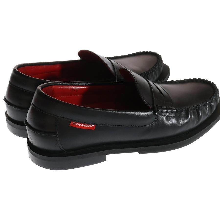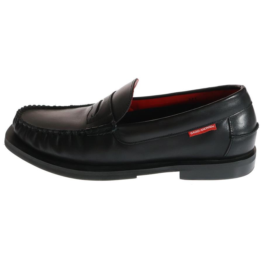 [モデル]GANZ スモールロゴ ビーフロール レザー ペニーローファー ブラック