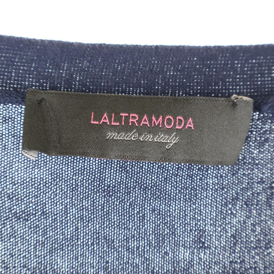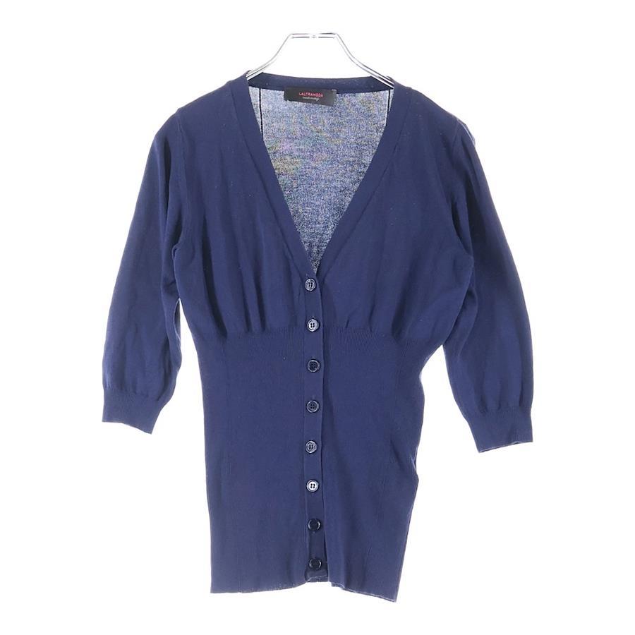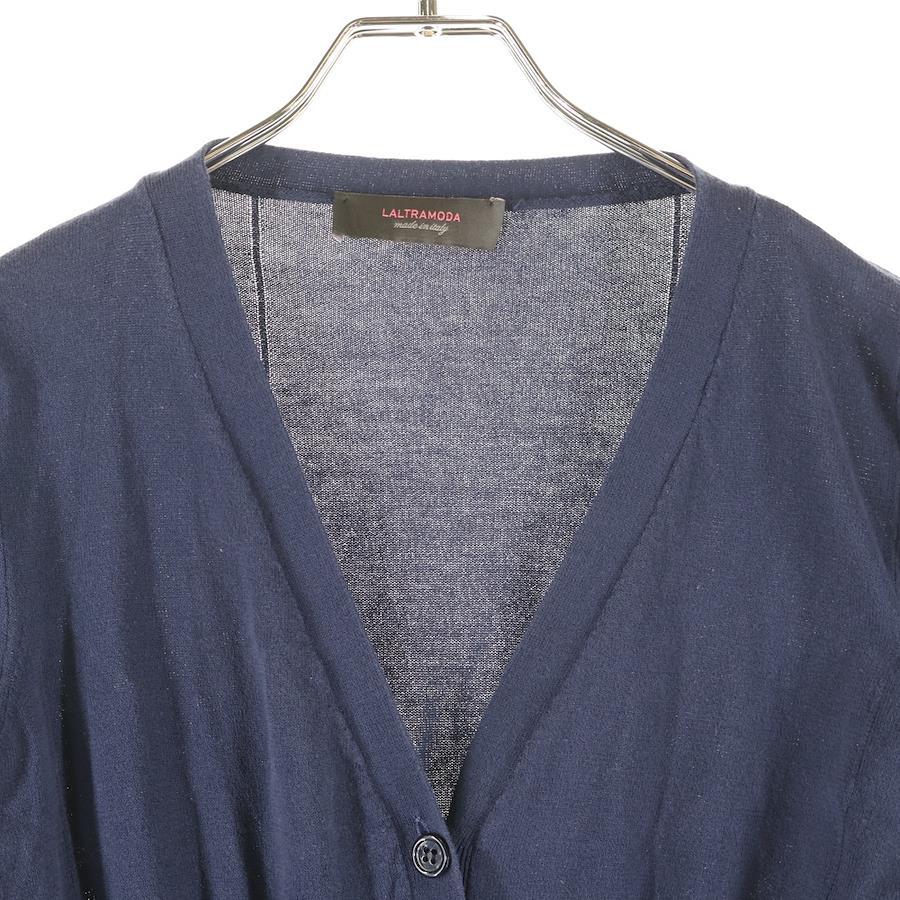 [モデル]LALTRAMODA ラルトラモーダ コットンニット 五分袖 カーディガン ネイビー レディース
