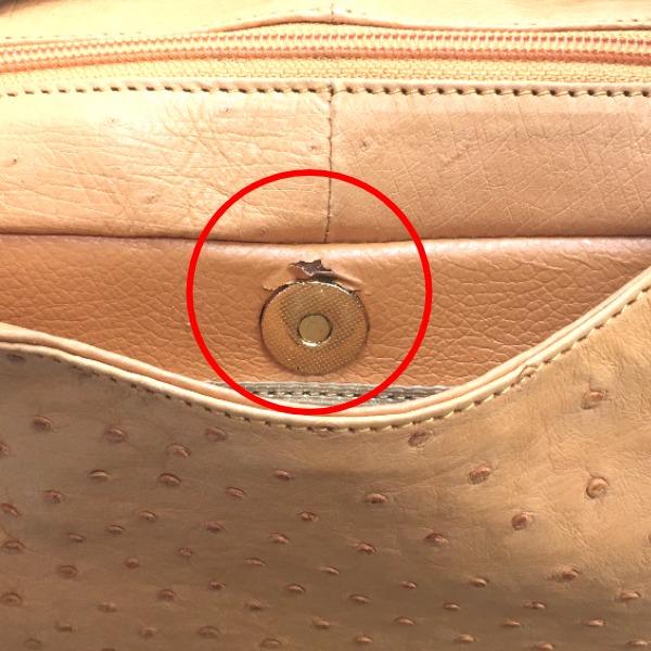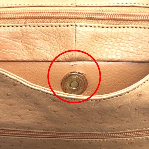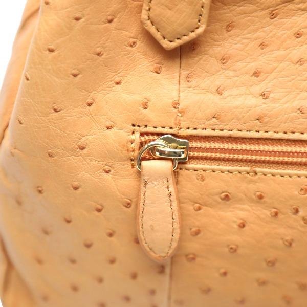 [サイズ]W約29.5cm x H約16cm x D約11cm開閉式:ファスナー外側:ファスナーポケット x 1、マグネット式ポケット x 2内側:ファスナーポケット x 1、オープンポケット x 2[付属品]保存袋[商品説明]独特の模様が特徴的なオーストリッチ革でつくられた、魅力溢れるハンドバッグです♪