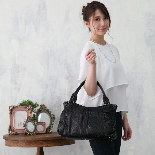 [サイズ]W約38cm x H約25cm x D約14cmショルダー:約116-124cm開閉式:ファスナー外側:ファスナーポケット x 1内側:オープンポケット x 2、ファスナーポケット x 1[付属品]なし[商品説明]ブラックカラーのクールなパイソンバッグ☆ファスナー開閉でセキュリティーも安心です。中には携帯ポケットとオープンポケット、ファスナーポケットと収納部も充実。容量もシッカリあるのでデイリーユースとして活躍できます。