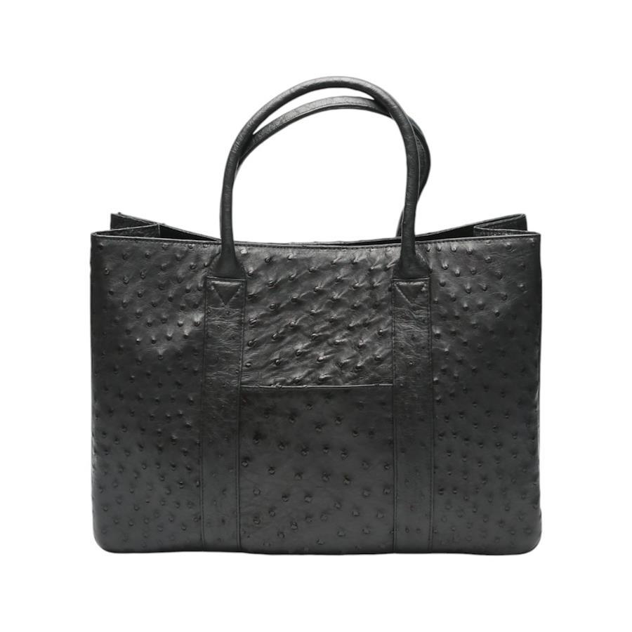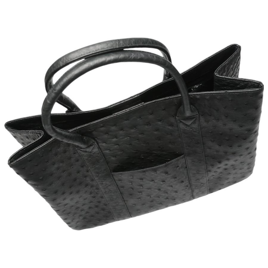 [サイズ]W約37cm x H約27cm x D約12cm開閉式:スナップボタン外側:オープンポケット x 2内側:ファスナーポケット x 2、オープンポケット x 1、ペンホルダー x 1[付属品]なし[商品説明]独特の模様が特徴的なオーストリッチ革でつくられた、魅力溢れるハンドバッグです♪