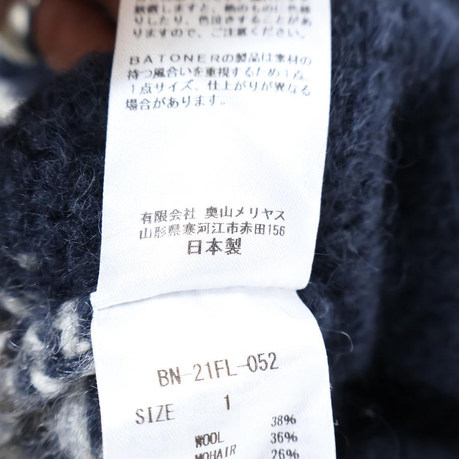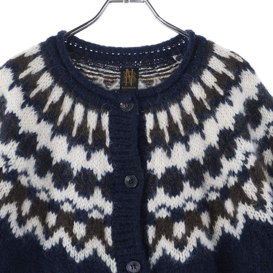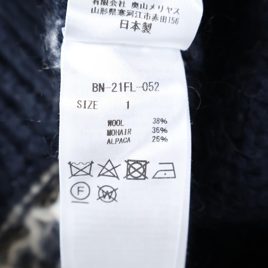 [モデル]21AW MOHAIR NORDIC CREW NECK CARDIGAN ノルディック総柄 モヘヤ アルパカ混 ウール クルーネック ニット カーディガン ネイビー レディース BN-21FL-052