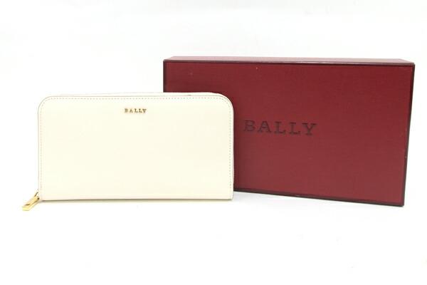 バリーラウンドファスナー長財布6237126オフホワイトレザー中古ロングウォレットラウンドジップロゴ財布レディースBALLY