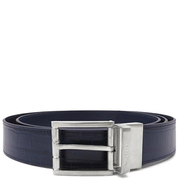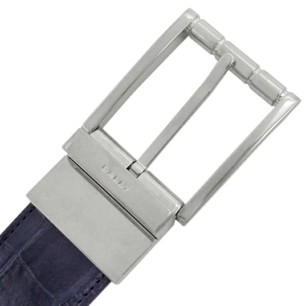 ▲クリックで拡大されますバリー BALLY ベルト アストリー ASTORY #120 リバーシブル レザー マリン 新品 未使用 紺 クロコ型押し シルバー金具 6307590 #120 メンズ 【箱】 【中古】