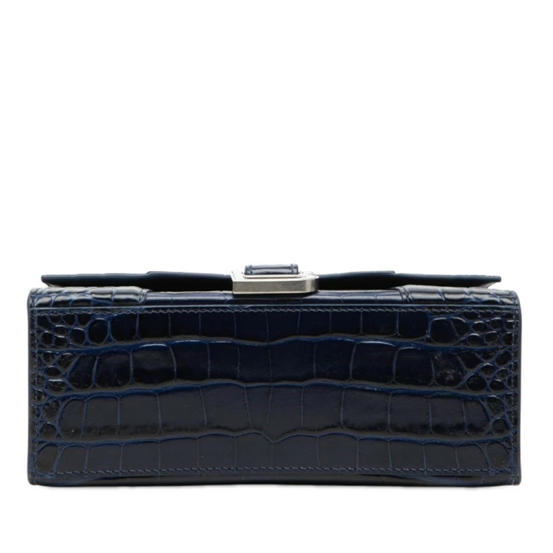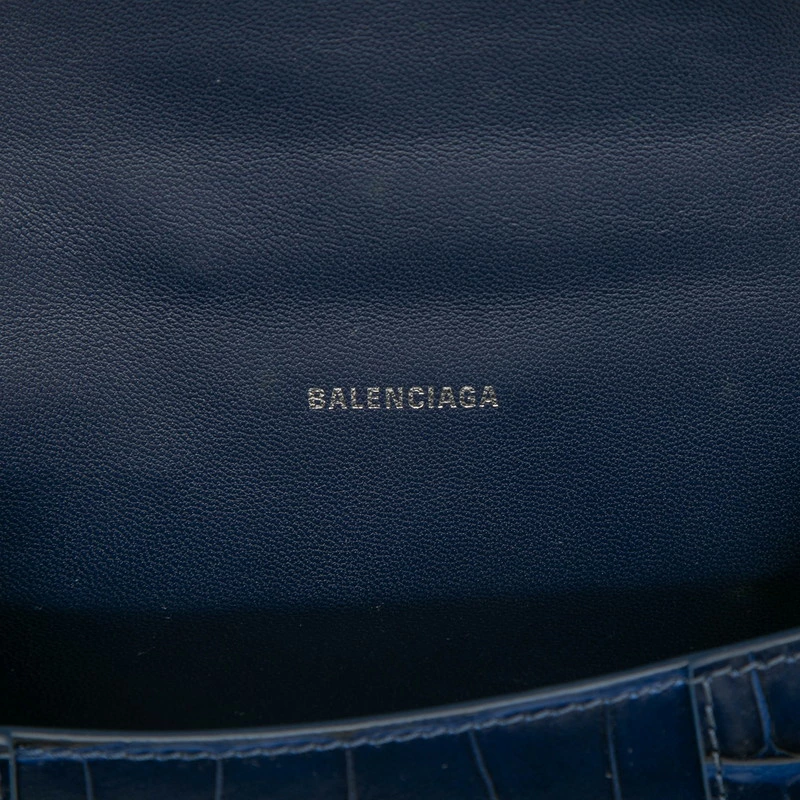 Balenciaga Hourglass XS Crocodile Embossed Handbag/Shoulder Bag 2WAY 592833 Navy Leather Women's BALENCIAGA [Pre-owned]