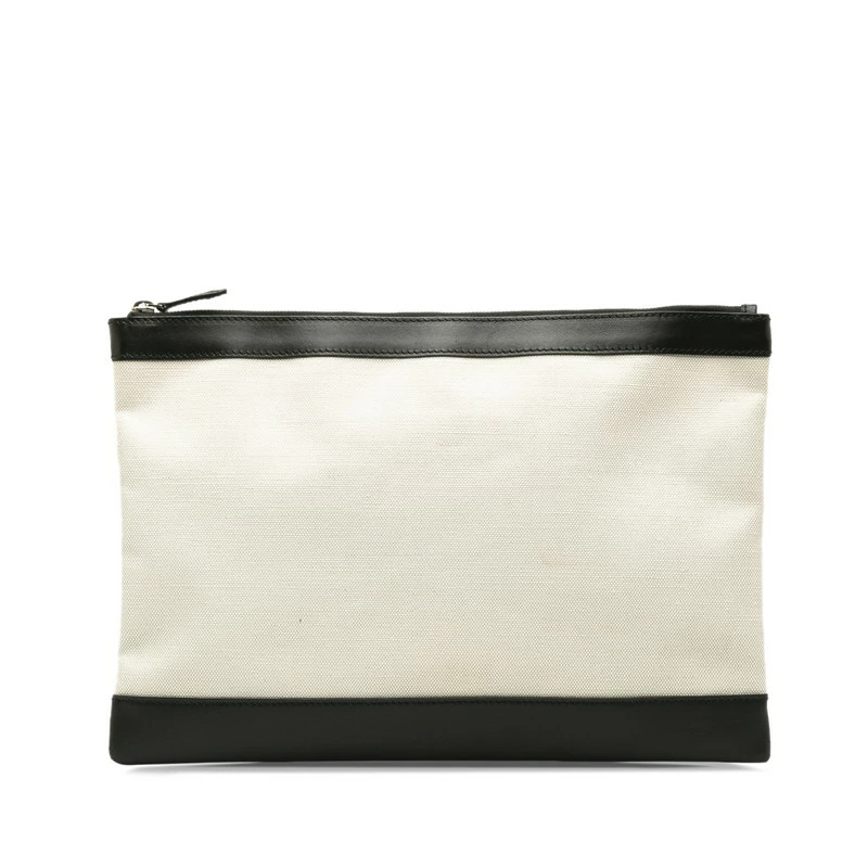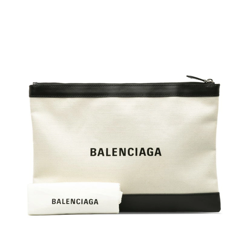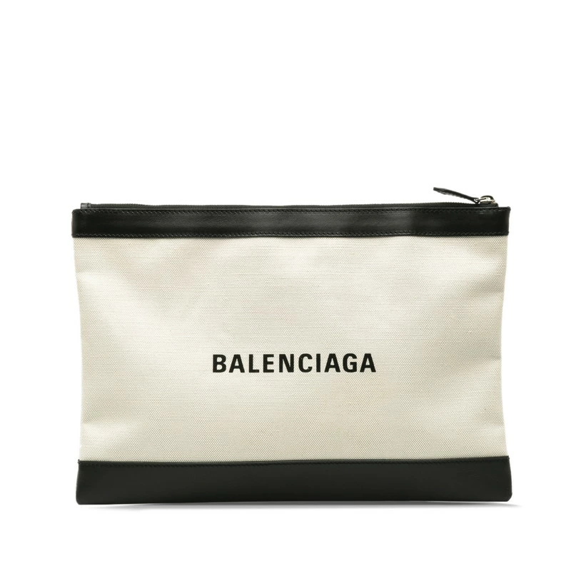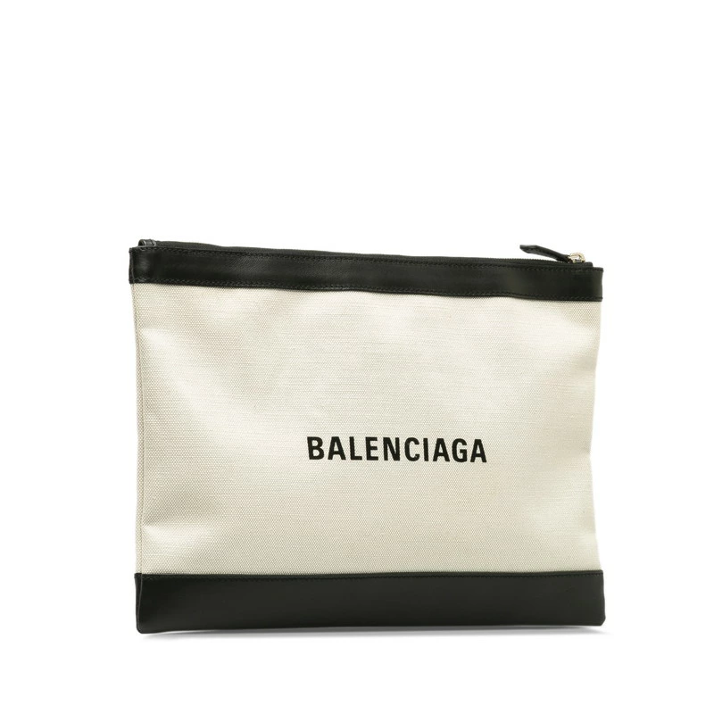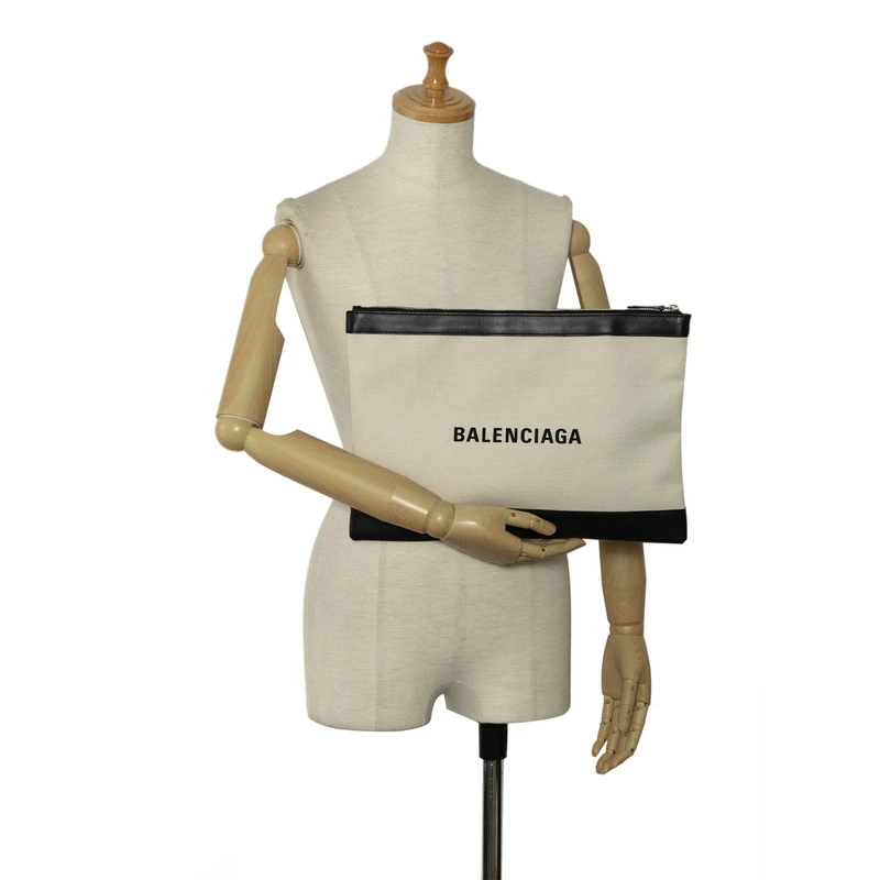 - バレンシアガ クラッチバッグ 373840 ベージュ ブラック キャンバス レザー レディース BALENCIAGA 【中古】