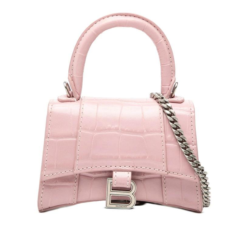 - バレンシアガ クロコ型押し ミニハンドバッグ トップハンドル チェーンショルダーバッグ 2WAY 718807 ピンク レザー レディース BALENCIAGA 【中古】